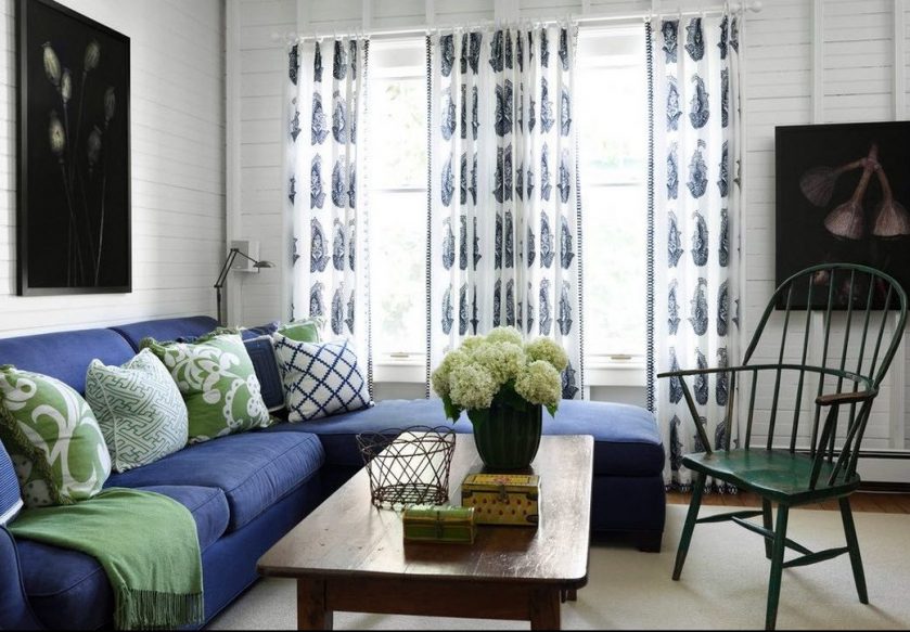 Uma peça tão significativa de mobília, como um sofá em azul, é uma decisão muito corajosa, se o assunto não se referir ao quarto das crianças. Normal nos quartos para as crianças, você pode notar quaisquer combinações de cores inesperadas, mas isso não surpreende ninguém. Mas na sala de estar a cor chamativa da peça de mobília não é encontrada com freqüência.