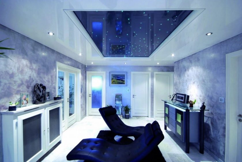 - compensa a profundidade do teto azul escuro branco ou bege, o que é desejável para escolher a decoração das paredes;
