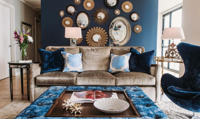 - idealmente combinado com um sofá azul no interior grande espelhos;