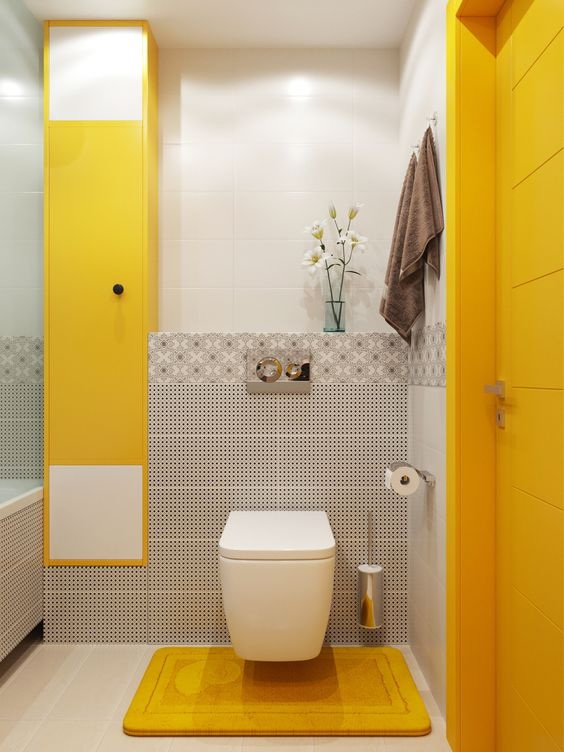 Mas existem características comuns que determinam a cor do interior clássico do banheiro combinado: