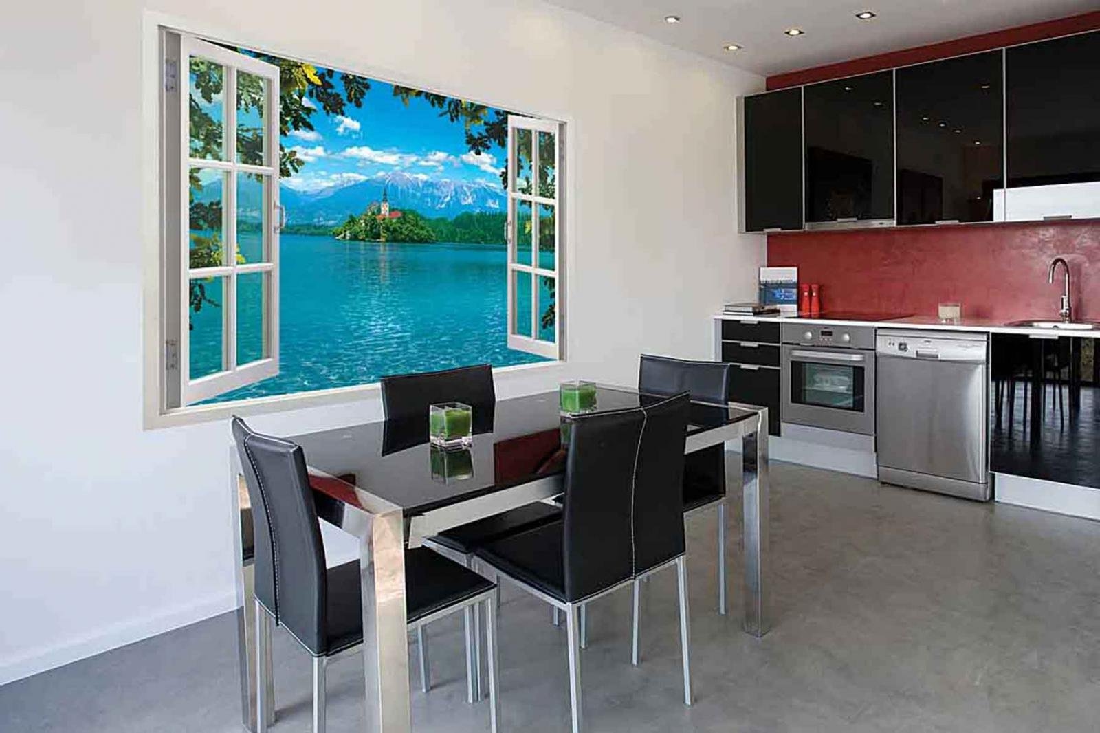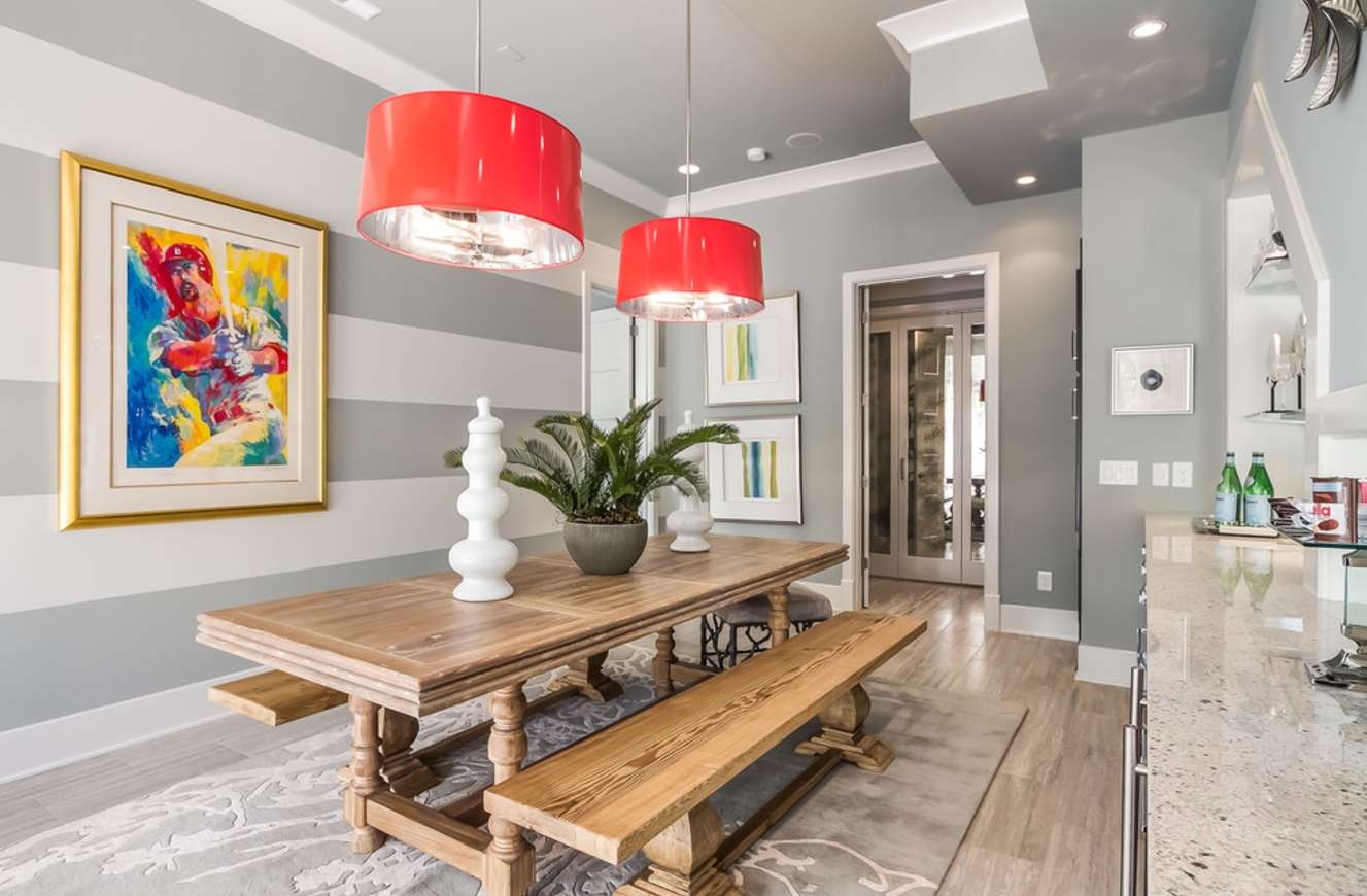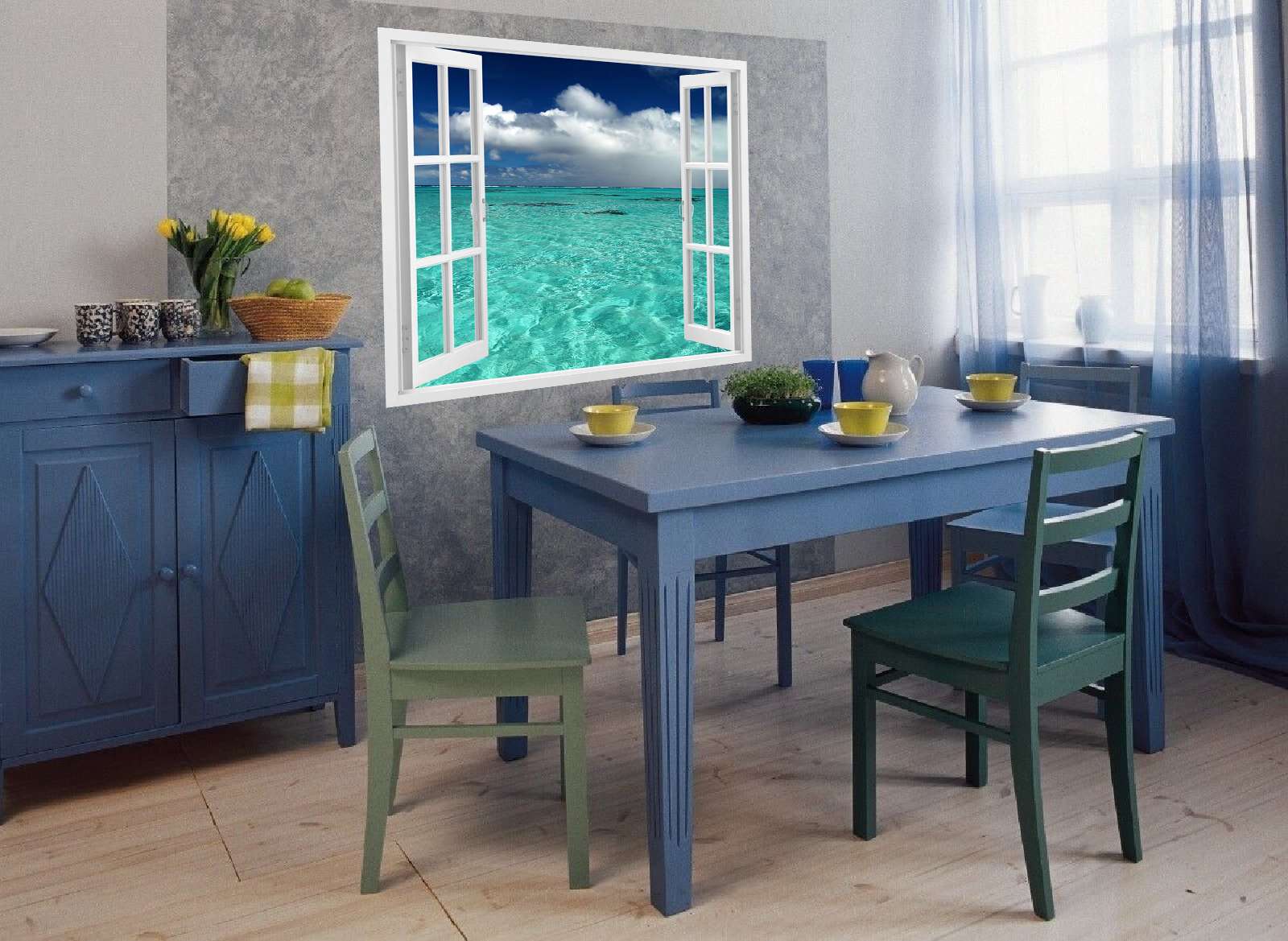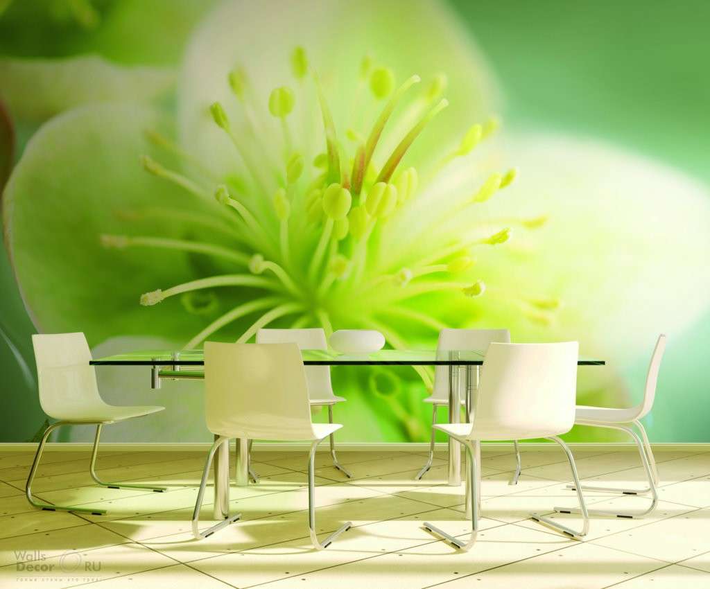 Mural de parede na área de jantar também será válido. O enredo deles deve corresponder ao estilo: