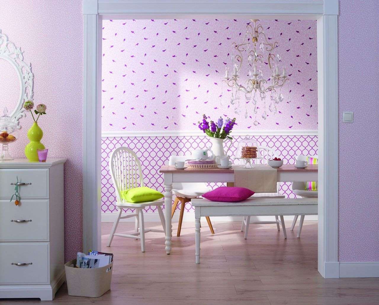 - Se você precisar combinar no design de dois tipos de papel de parede, poderá prestar atenção à coleção, que inclui rolos da mesma cor e rolos com impressões no mesmo esquema de cores.