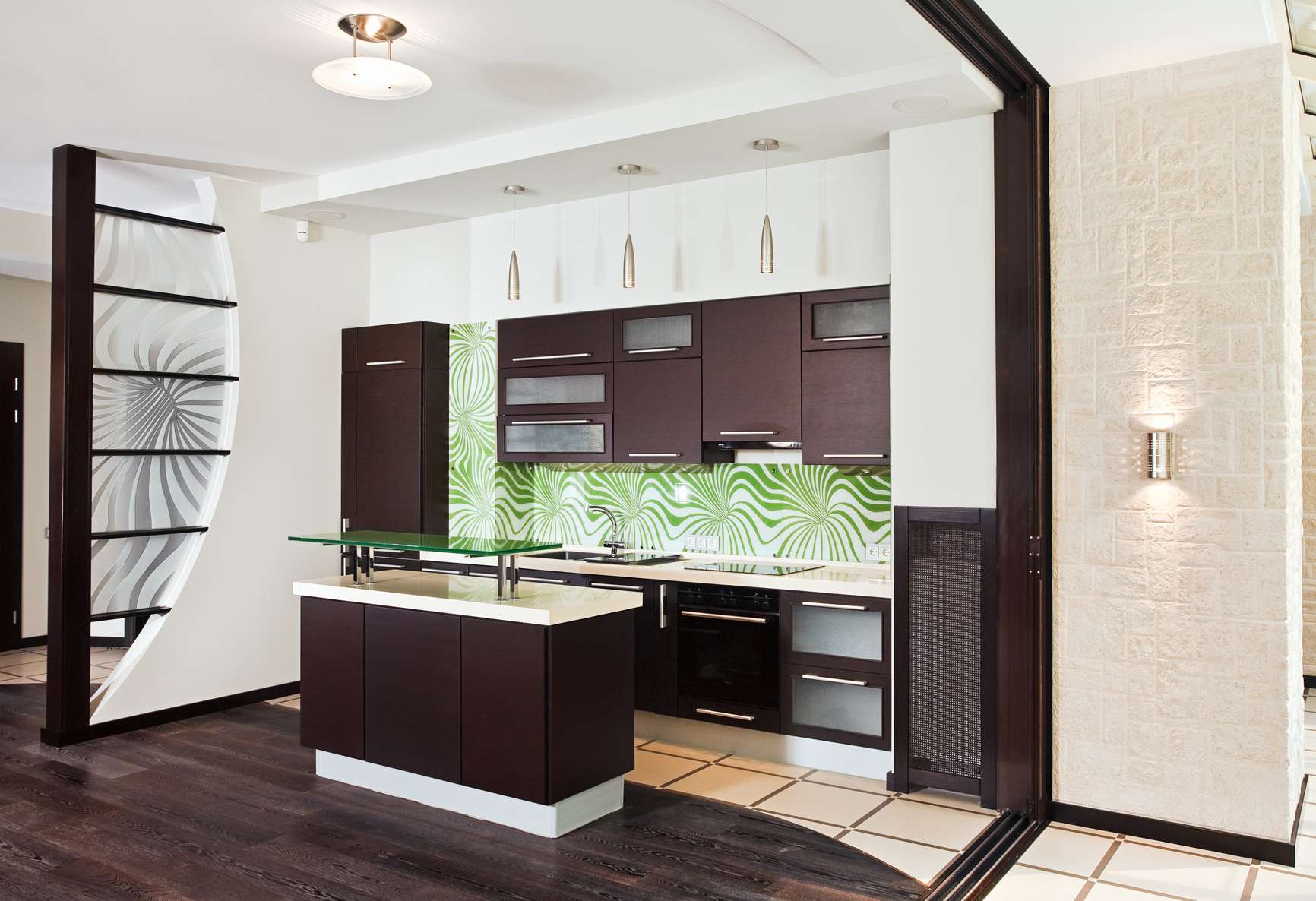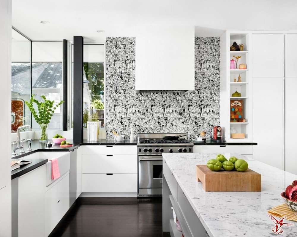 O que prestar atenção? Na qualidade. Para uma cozinha de estilo moderno, a seleção de padrões para papel de parede deve basear-se em sua conformidade com o design da mobília, na criação de uma determinada atmosfera e, é claro, confiar no orçamento alocado para reparos.