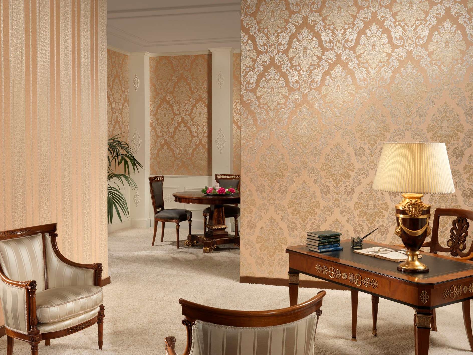 Esta é uma das variedades de papel de parede de vinil. A base é a mesma, mas a decoração é realizada com fios de seda, permitindo fazer uma tela muito bonita. Isso cria uma superfície completamente lisa, o papel de parede parece muito bom, mesmo sem cuidados complicados.
