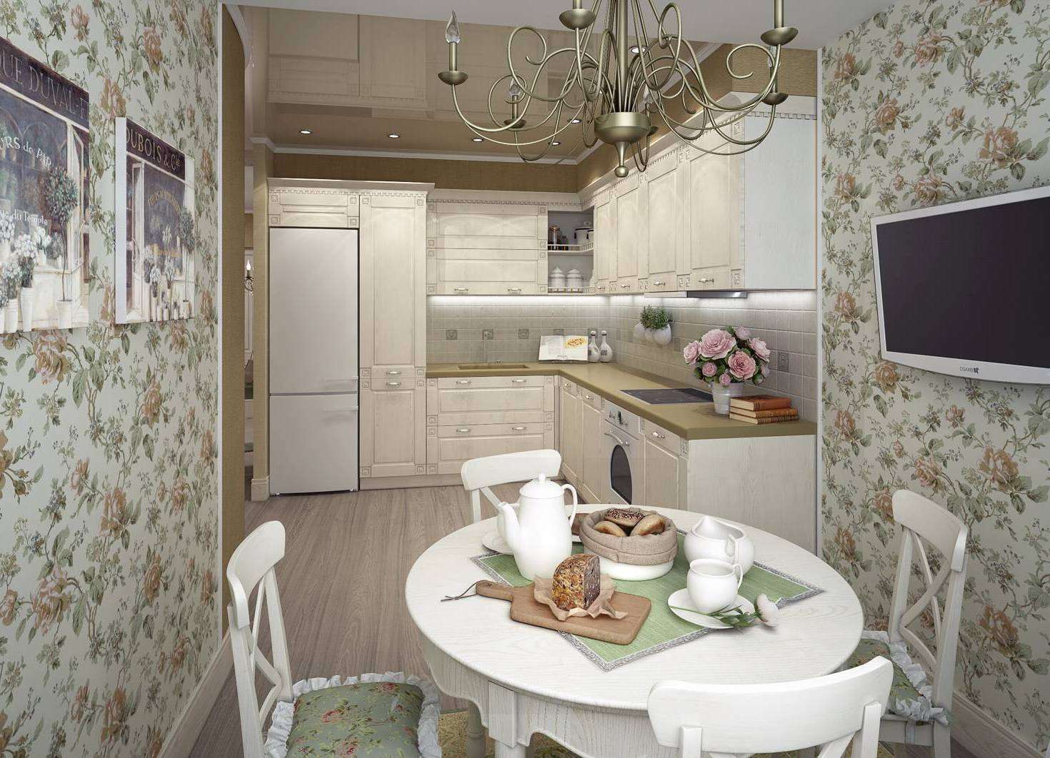Para os românticos que apreciam a simplicidade da vida e proximidade com a natureza, Provence e Country - a melhor opção para decoração de casa. A cozinha não é exceção. Como impressões no papel de parede, você pode ver imagens de pequenas flores, tiras de galhos, folhas ou videiras.