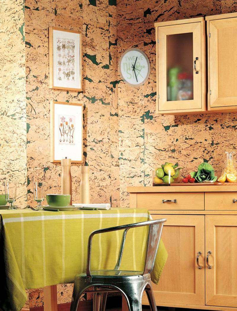 Imediatamente, notamos a possibilidade de aplicar papéis de parede de papel simples às cozinhas. Seu baixo desempenho não suportará as duras condições da cozinha. Portanto, apesar do respeito pelo meio ambiente e baixo preço, não compramos papel de parede para a cozinha.