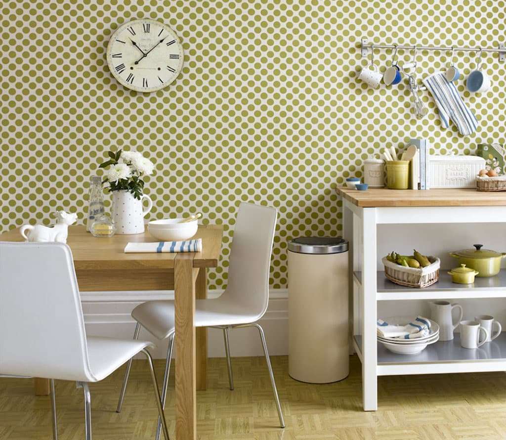 - A escolha do papel de parede deve levar em conta a luz natural da cozinha.
