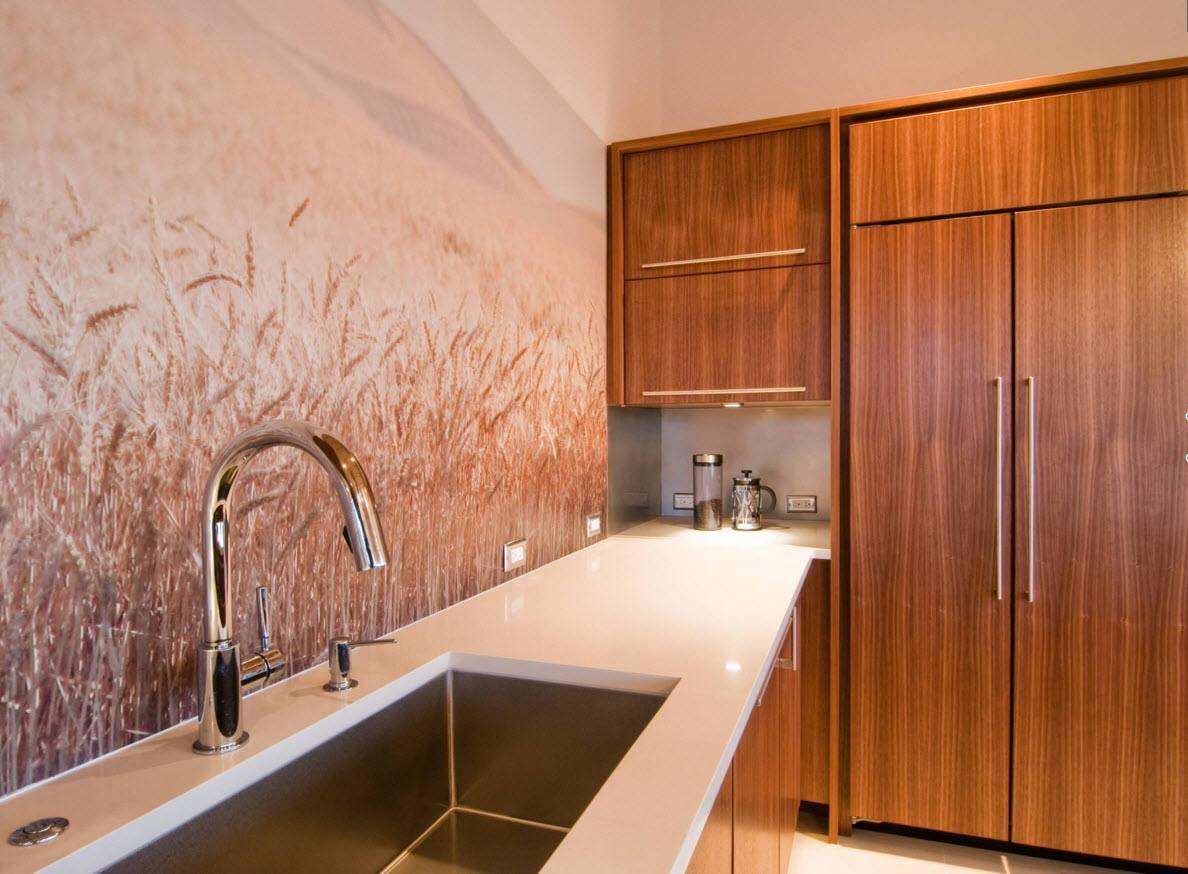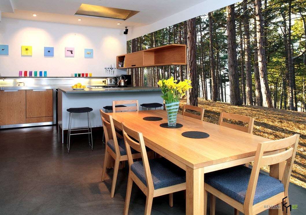 Papel de parede moderno para a cozinha - este é um design de interiores prático e durável. Condições especiais na cozinha exigem muito do papel de parede. A alta umidade está freqüentemente presente nesta sala e as flutuações de temperatura não são incomuns. Portanto, qualquer papel de parede não funcionará.