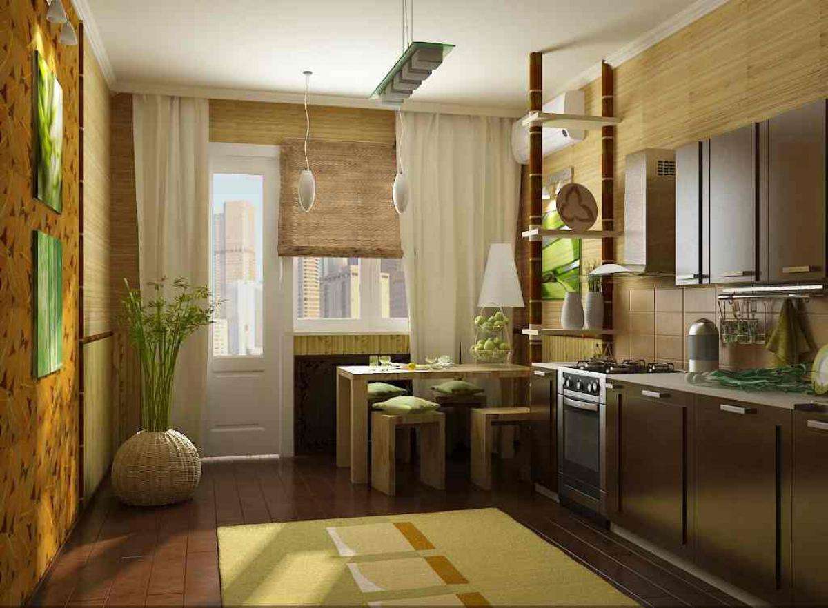 Tudo relacionado com a vida na natureza será apropriado em tal interior de cozinha.Entre as tonalidades escolhidas para a decoração, deve-se dar preferência a olhos agradáveis e a tons naturais calmos.