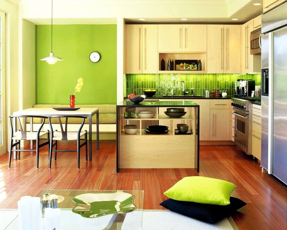 Se as dimensões da cozinha permitirem que você selecione essas áreas em tamanho real, considere-se com sorte. Outra opção possível é mover a área de jantar fora da cozinha para a sala de jantar ou sala de estar. Em uma pequena cozinha, você terá que combinar materiais e mostrar imaginação, a fim de organizar o espaço da forma mais eficiente possível.