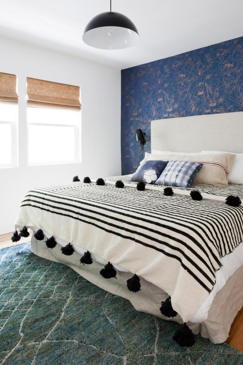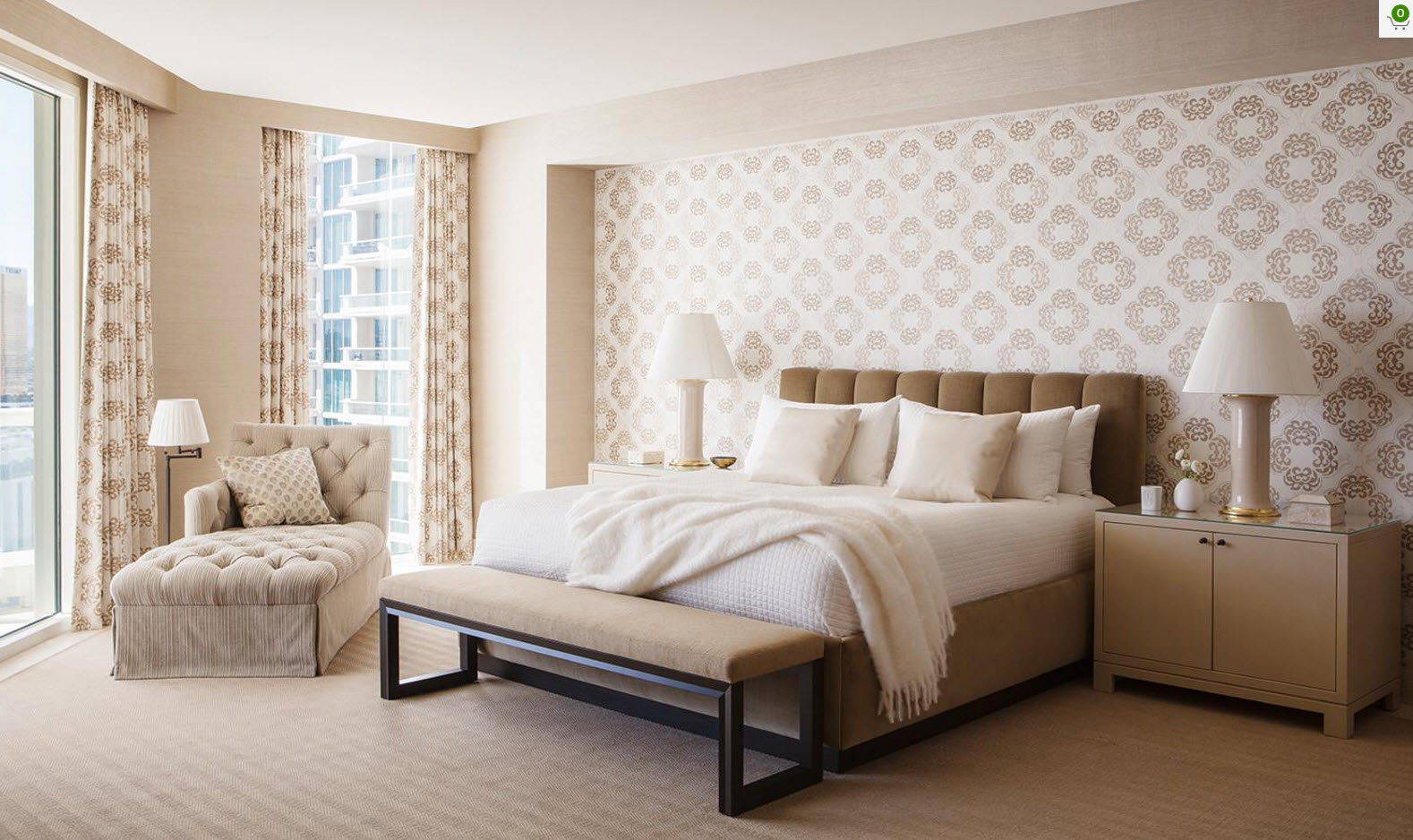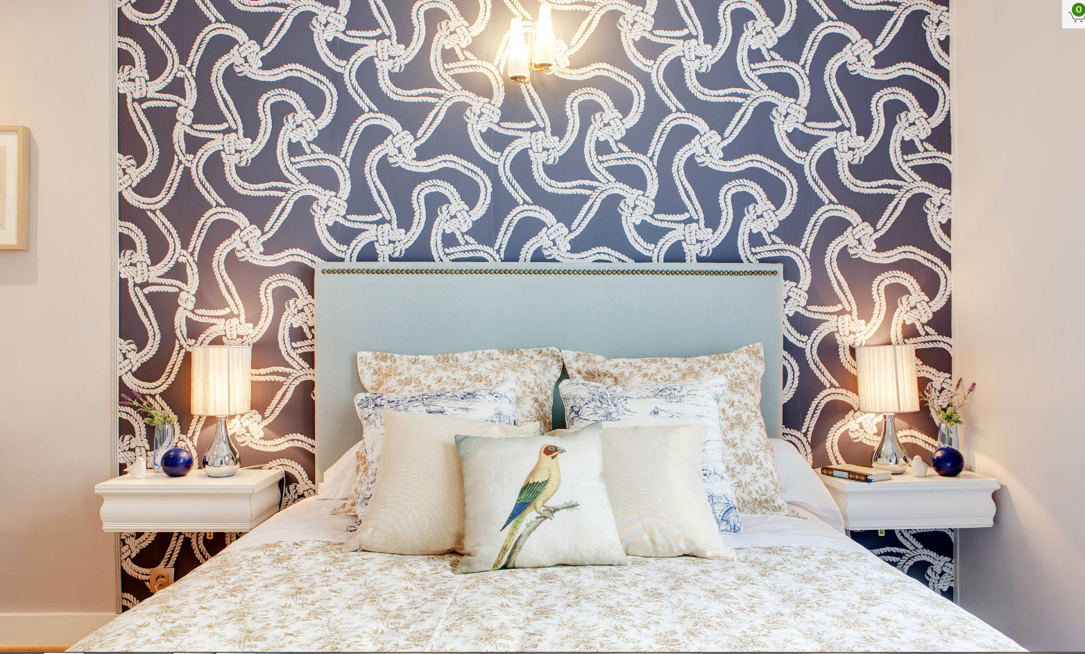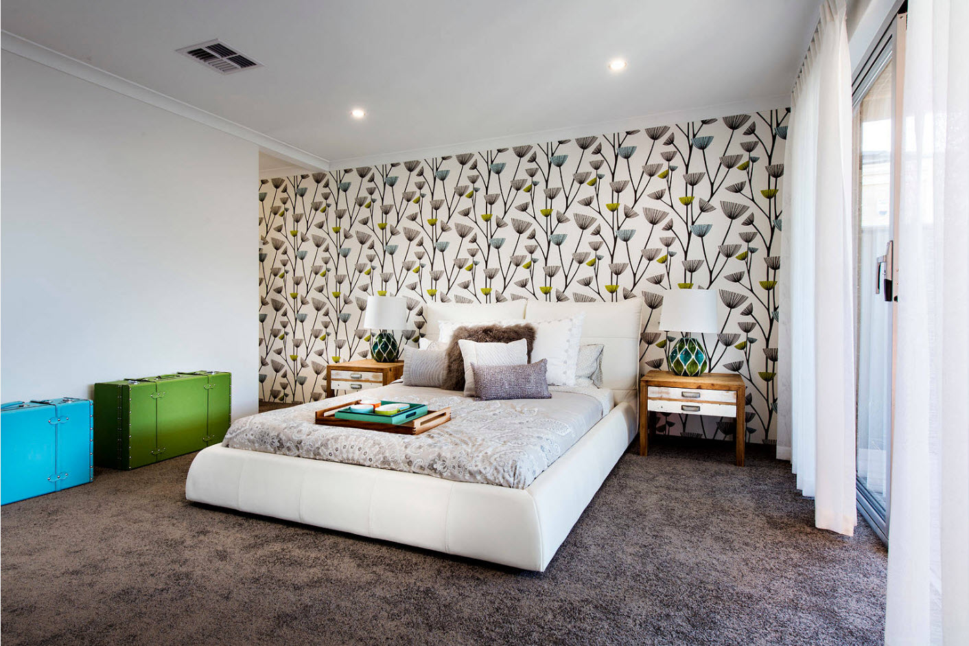 - Padrão de carpete na parede ao qual a cama fica ao lado.