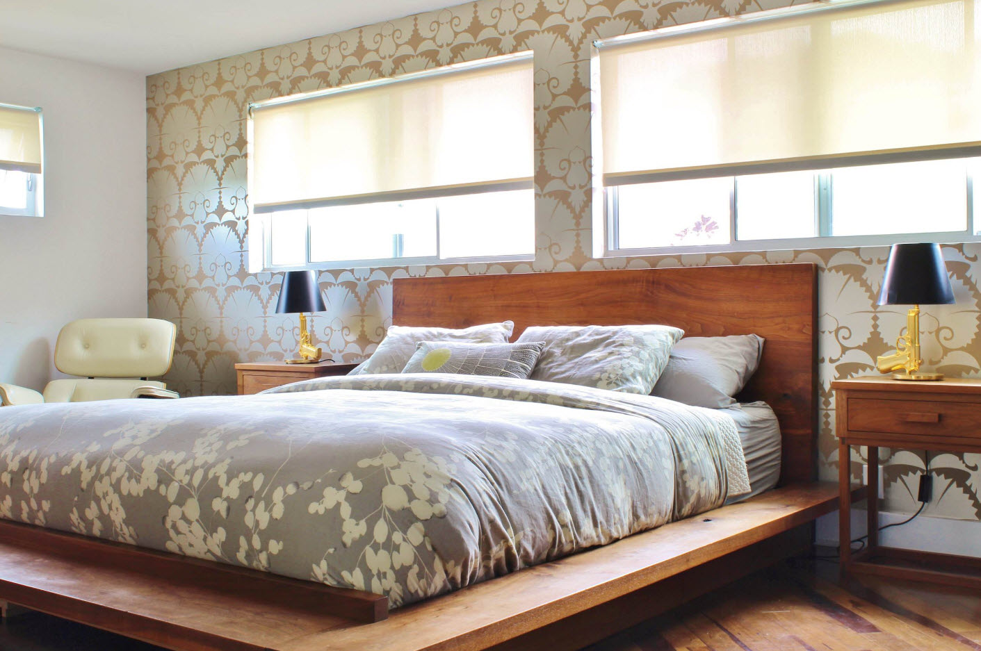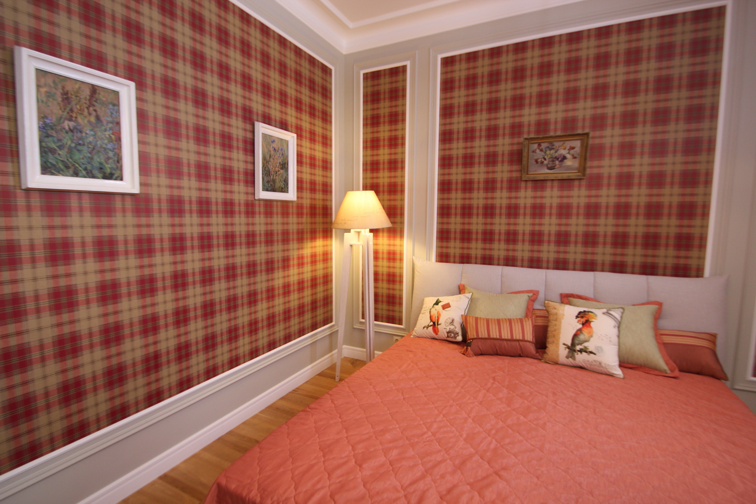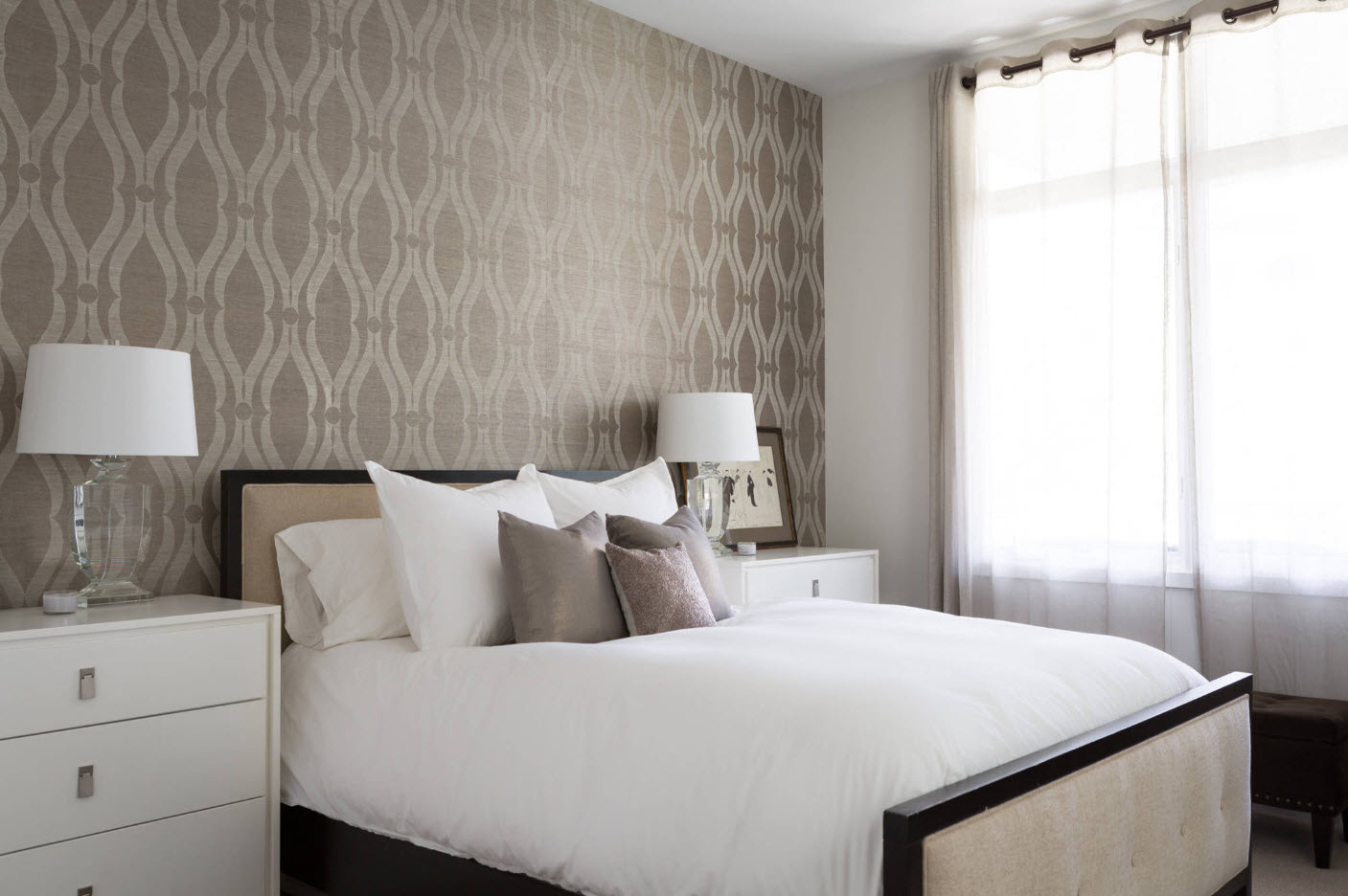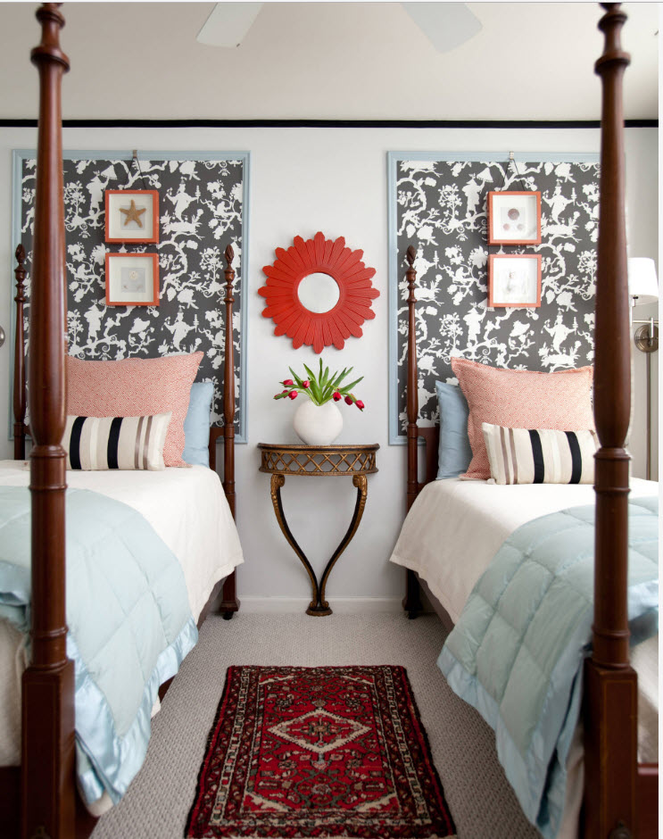 - Padrão de carpete na parede ao qual a cama fica ao lado.