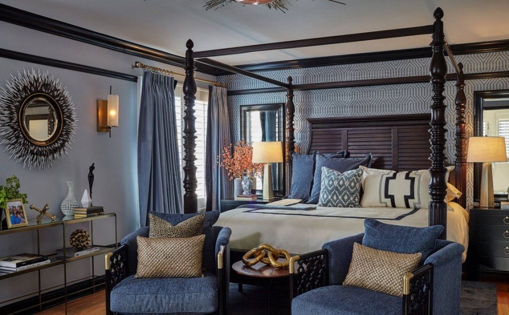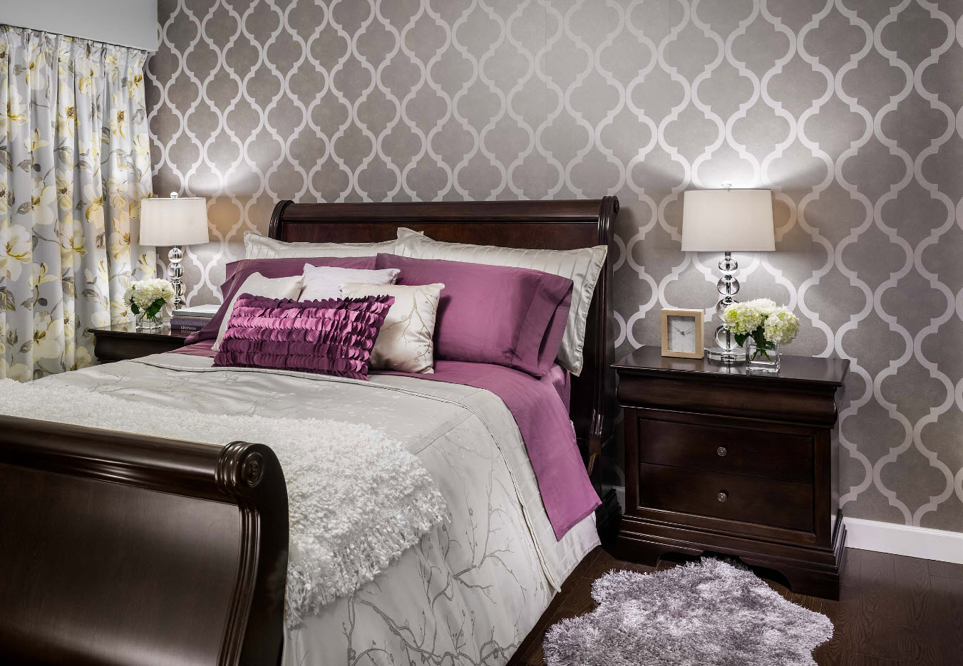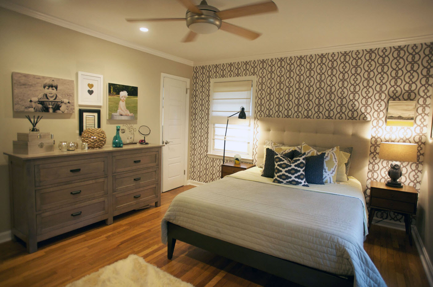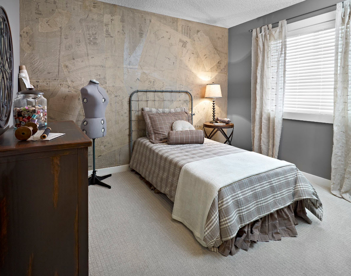 - Padrão de carpete na parede ao qual a cama fica ao lado.