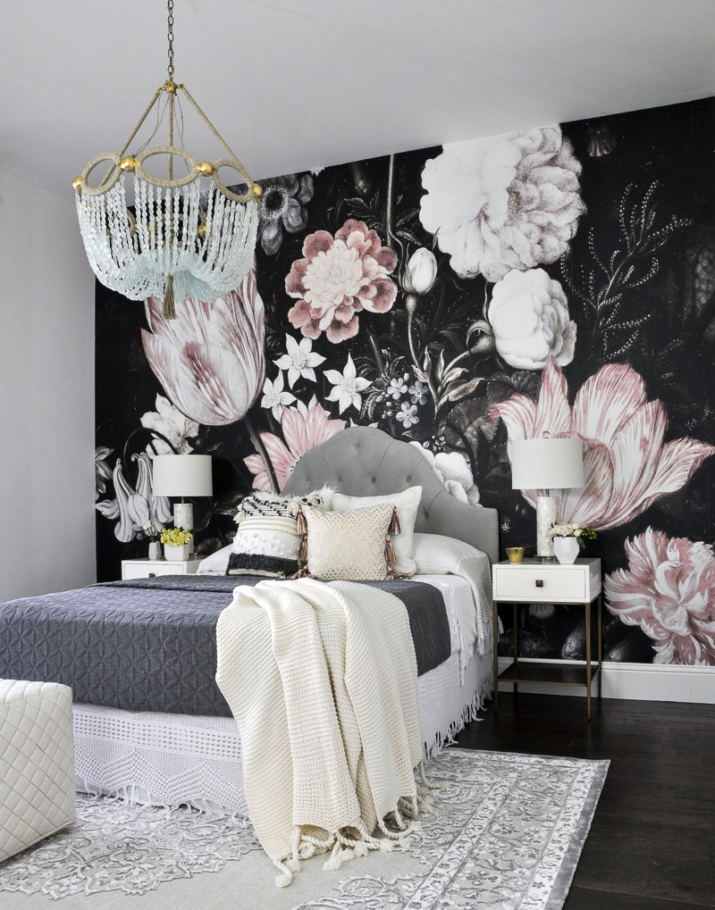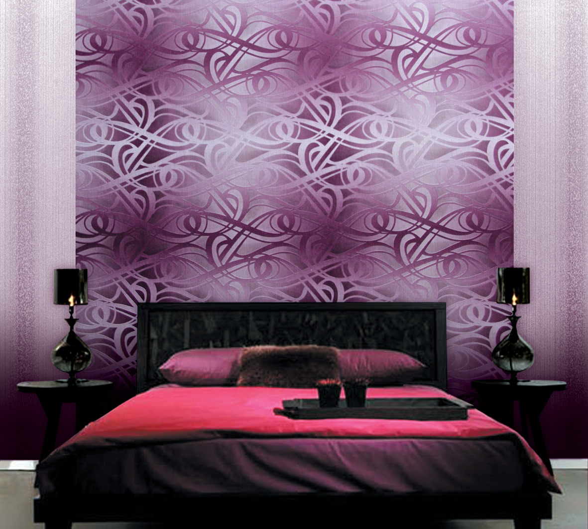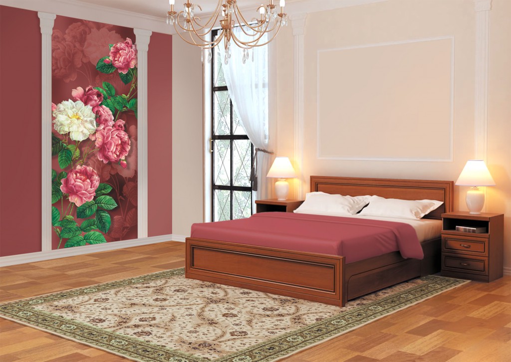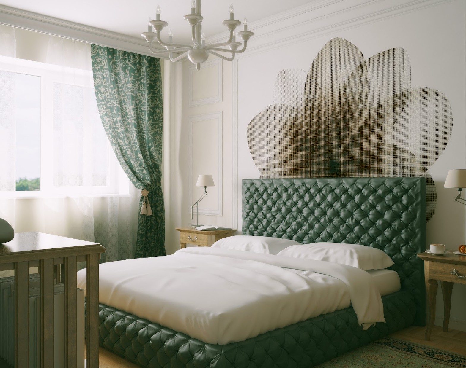 - Photowall-paper com desenho grande de alocação de uma área de recreação, uma cabeceira.