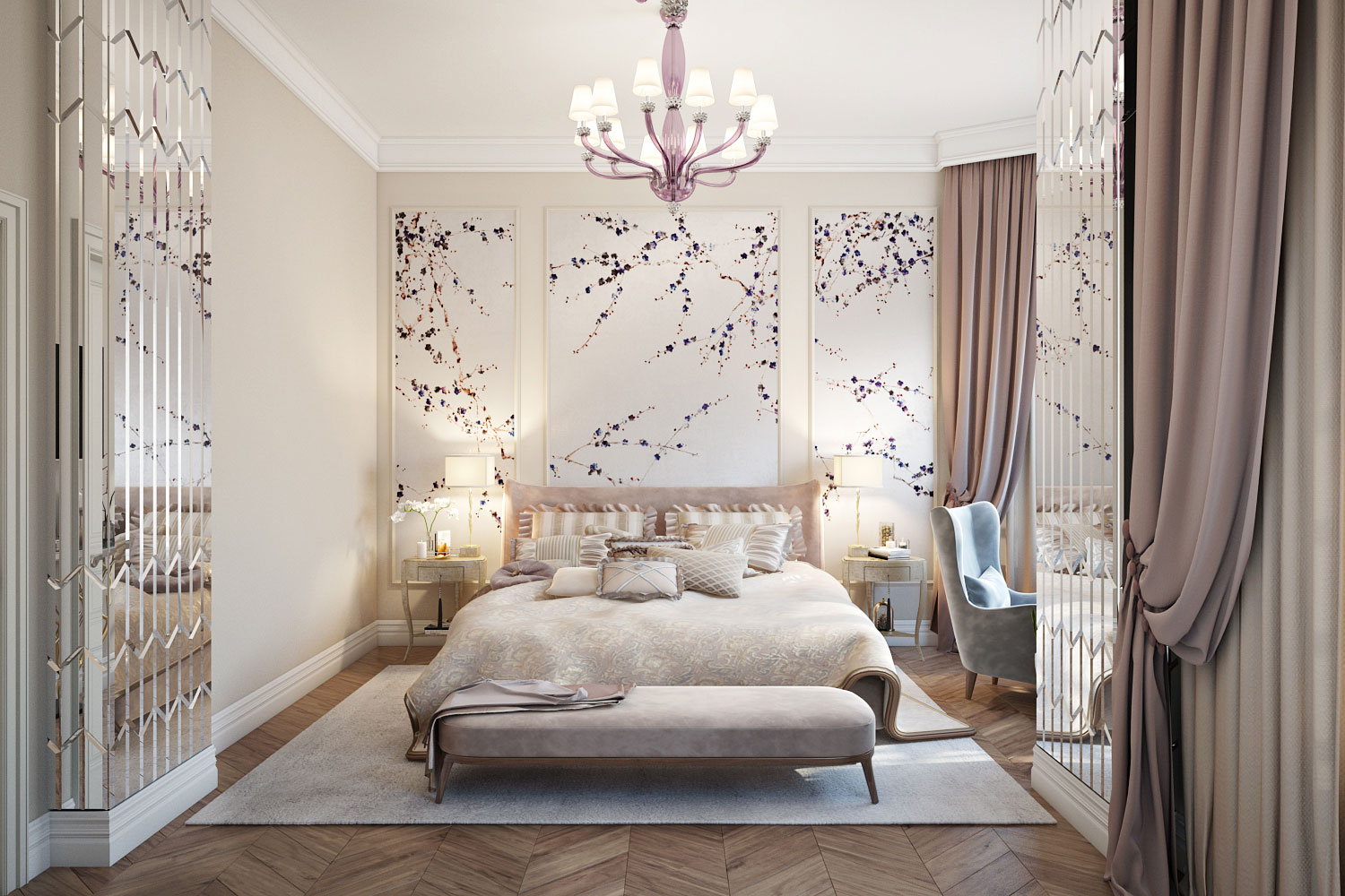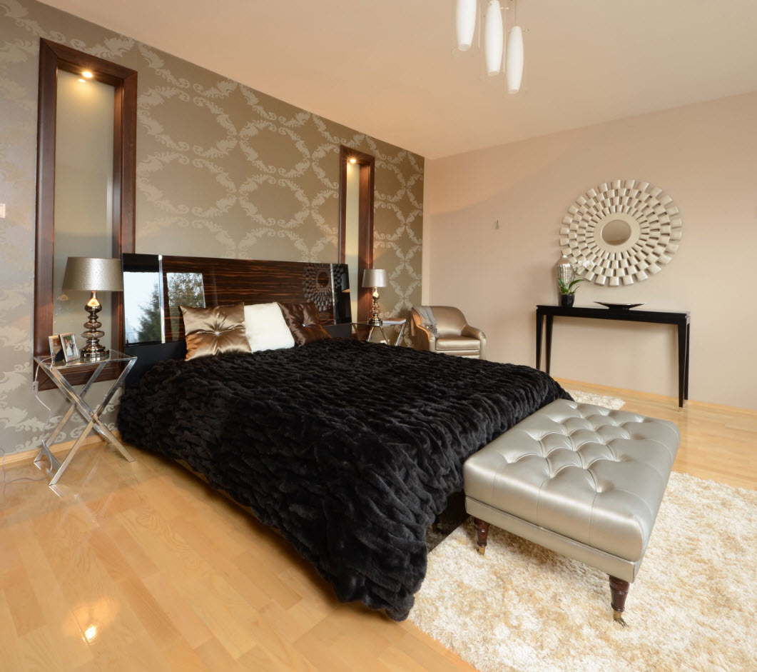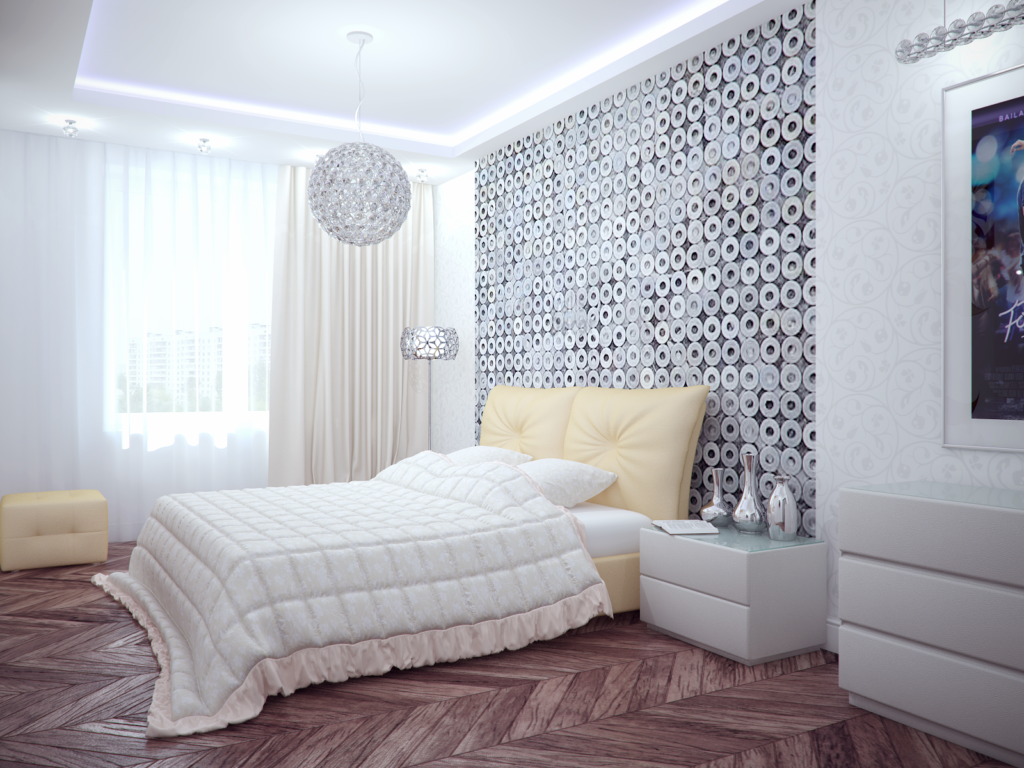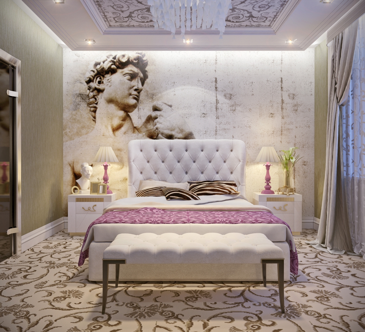 Além disso, com a ajuda de combinações, é fácil dar uma individualidade ao interior do quarto, implementando a sua própria ideia, mesmo a mais extravagante. Portanto, este método de decoração no número de tendências da moda.