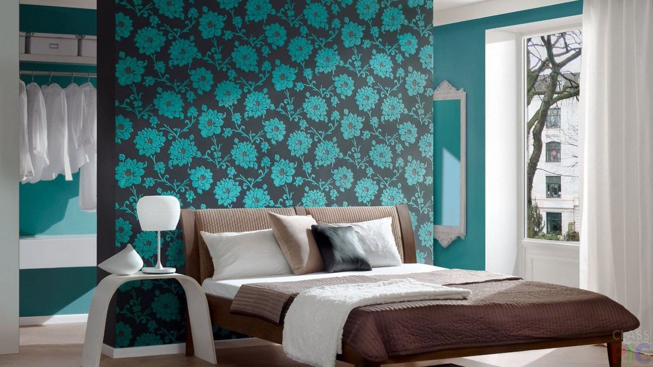 Moda está mudando em design de interiores. As parcelas vegetativas não ocupam as posições principais, mas em uma certa dose. Por exemplo, apenas em uma parede ou em tiras. Na tendência - uma parede brilhante com um ornamento na cabeça e três paredes simples.
