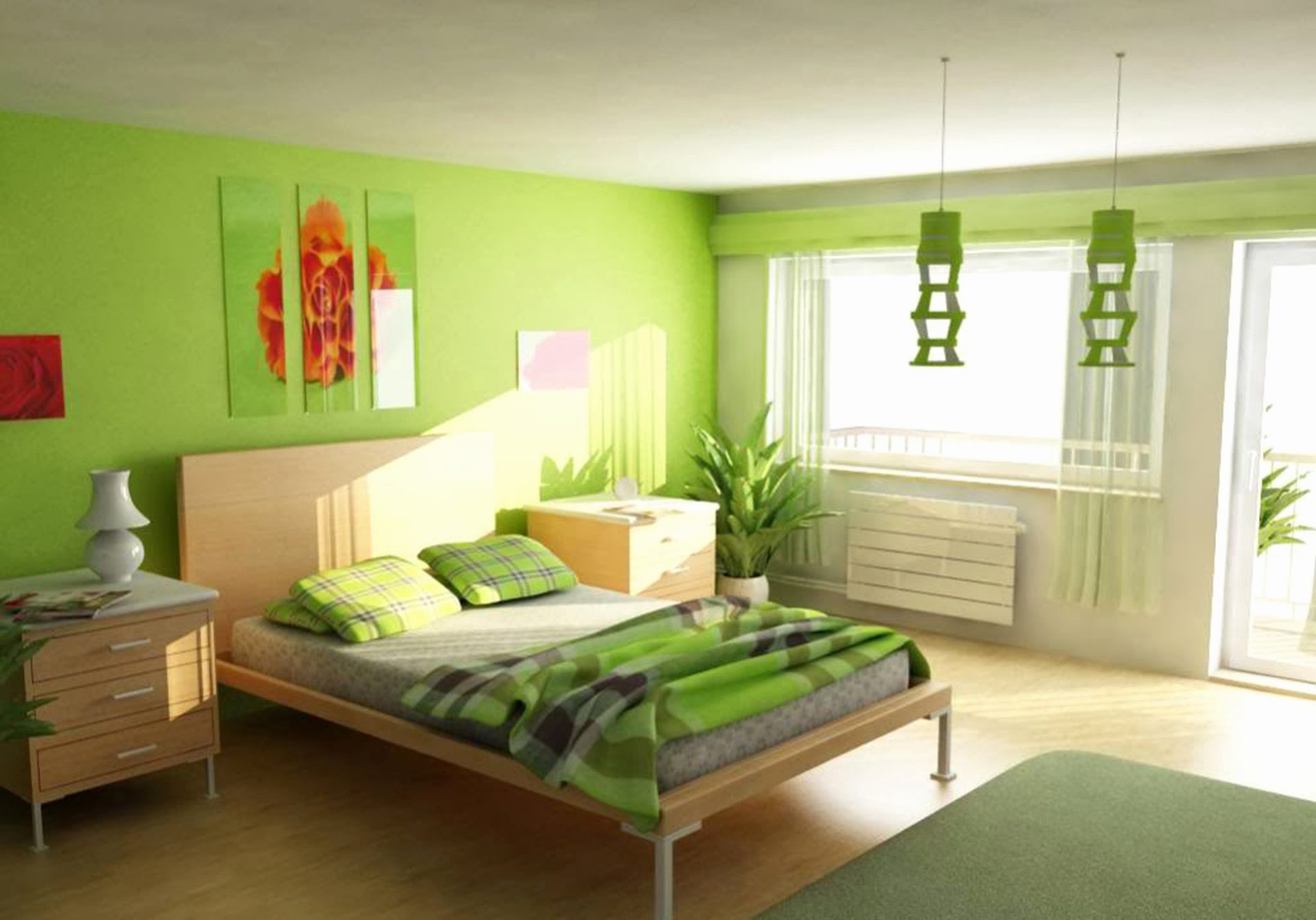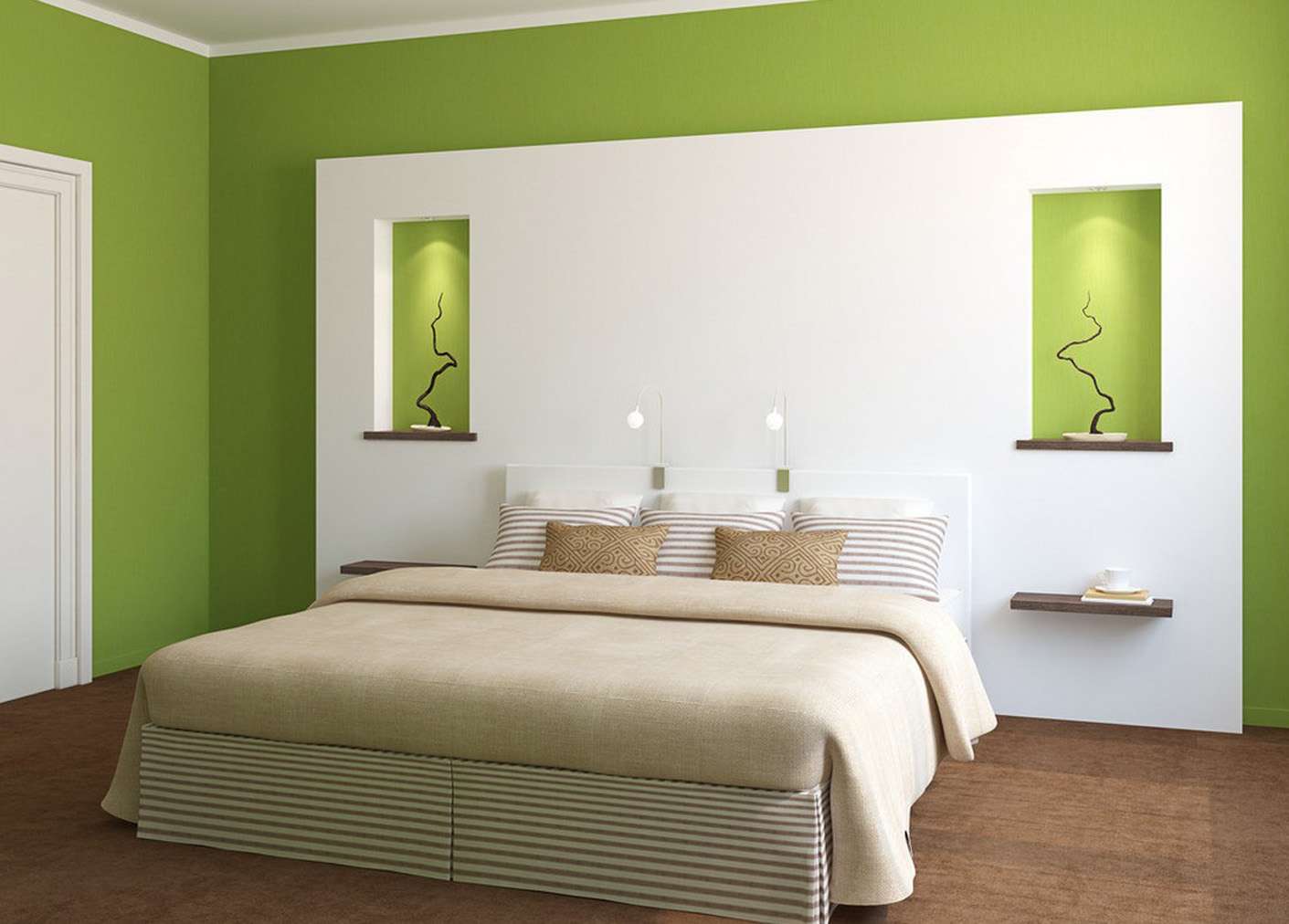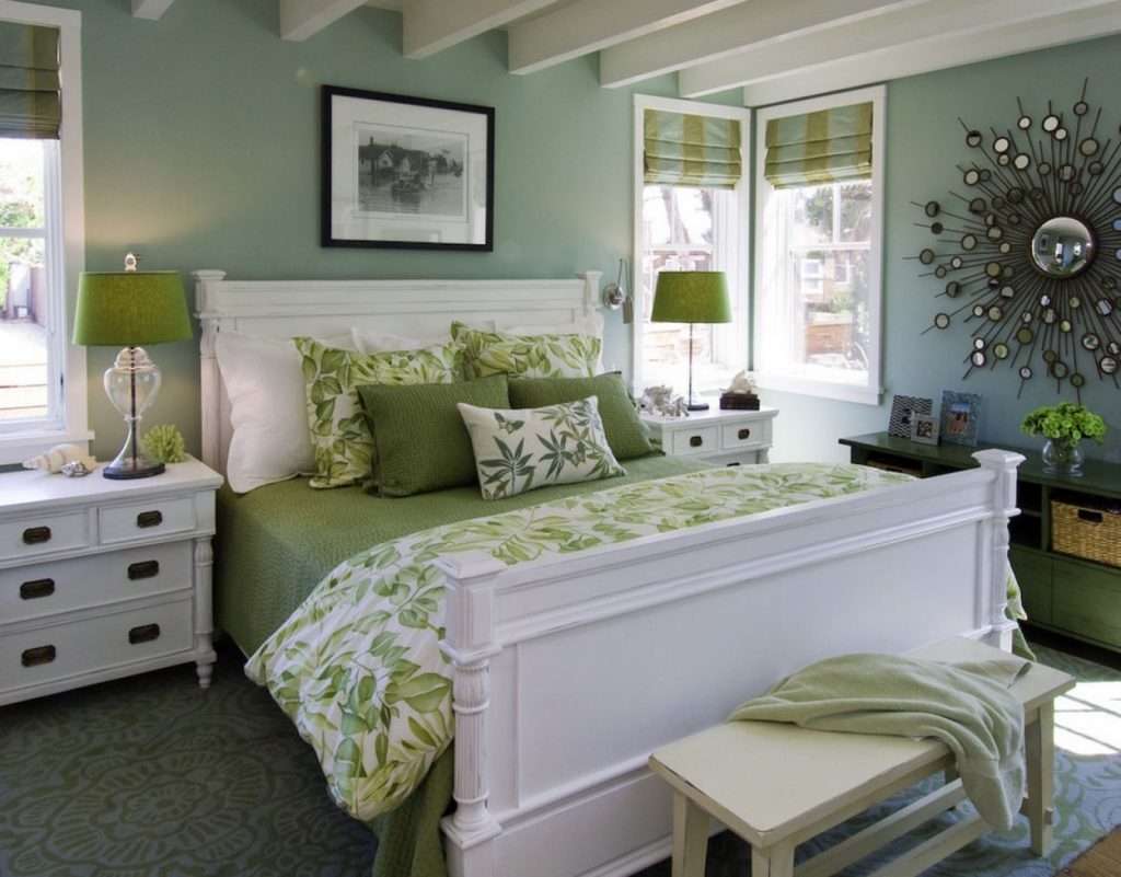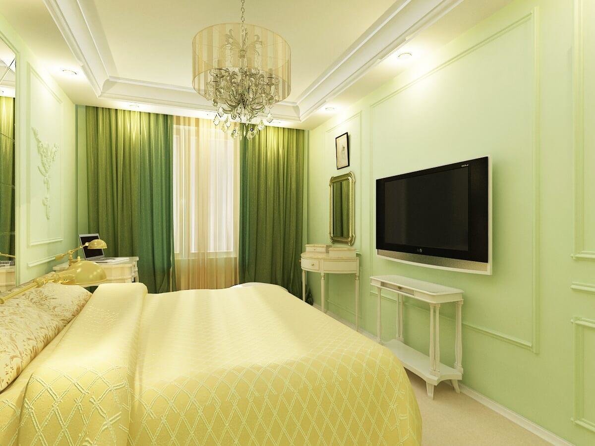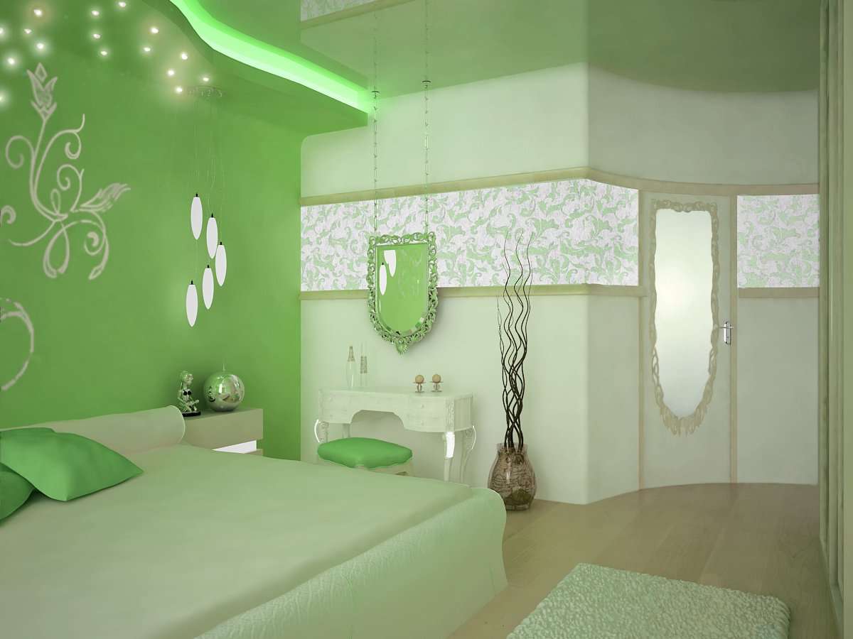 O quarto, feito em suaves tons verdes, contribui para um sono de qualidade. Uma pessoa em tal sala adormece rapidamente e em pouco tempo repõe a força gasta por dia. Os psicólogos concordam que esta cor é a mais bem sucedida para o quarto.