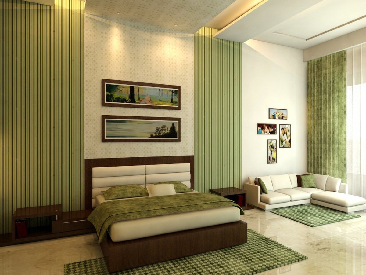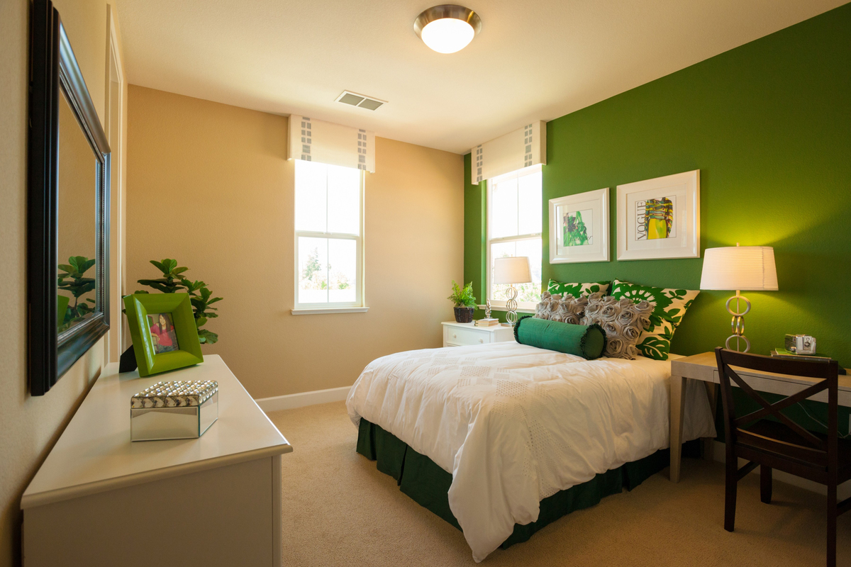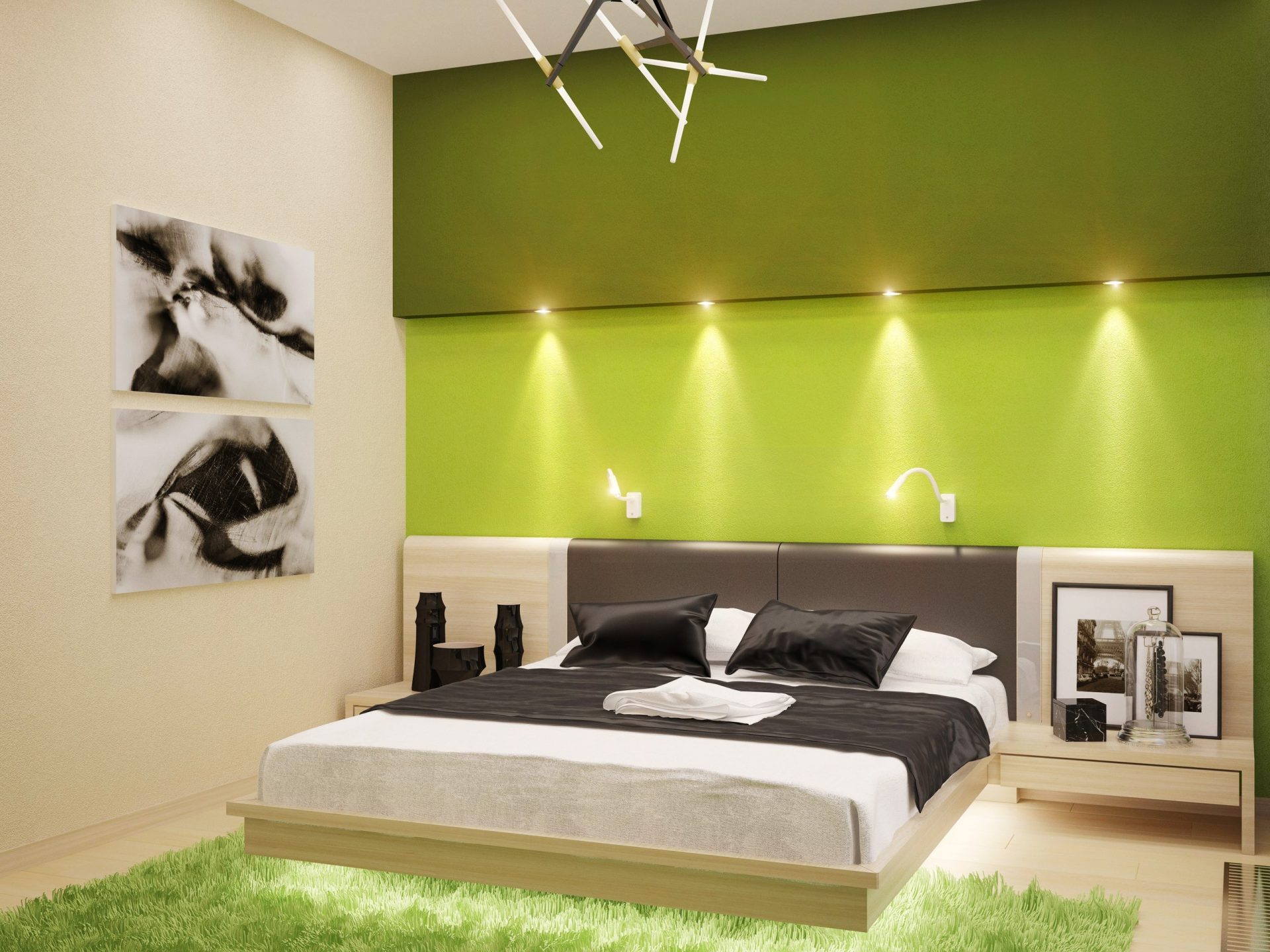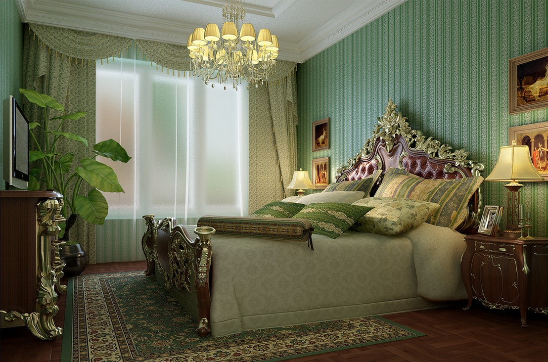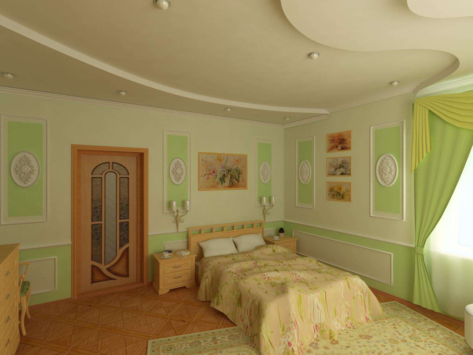 O quarto, feito em suaves tons verdes, contribui para um sono de qualidade. Uma pessoa em tal sala adormece rapidamente e em pouco tempo repõe a força gasta por dia. Os psicólogos concordam que esta cor é a mais bem sucedida para o quarto.