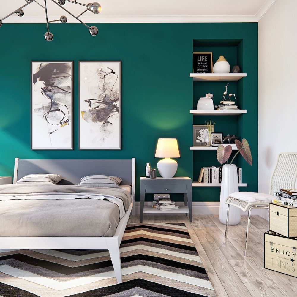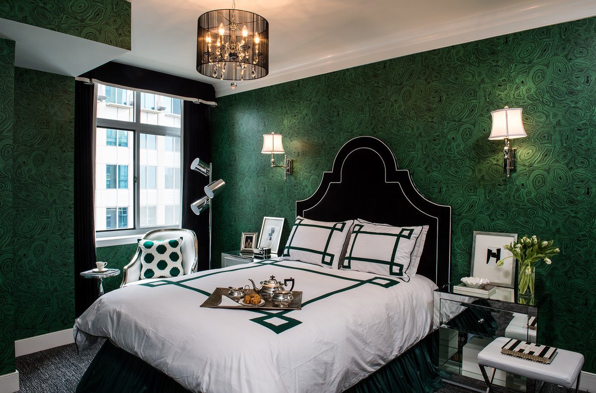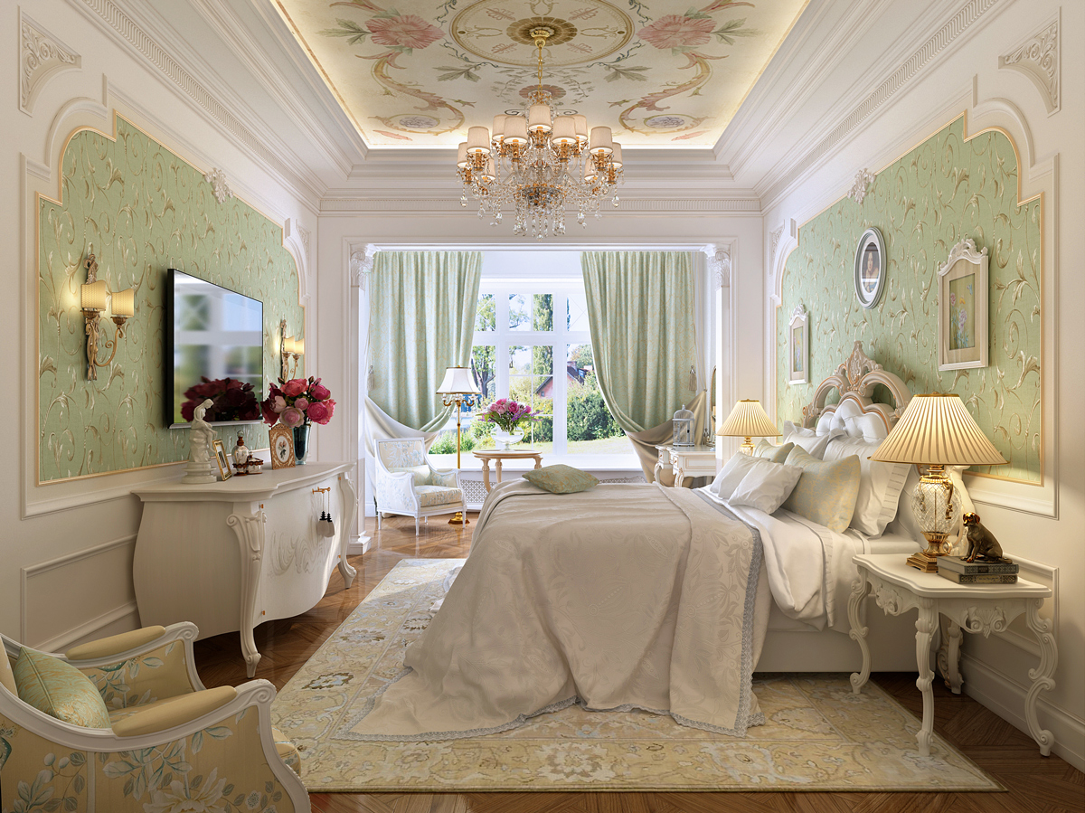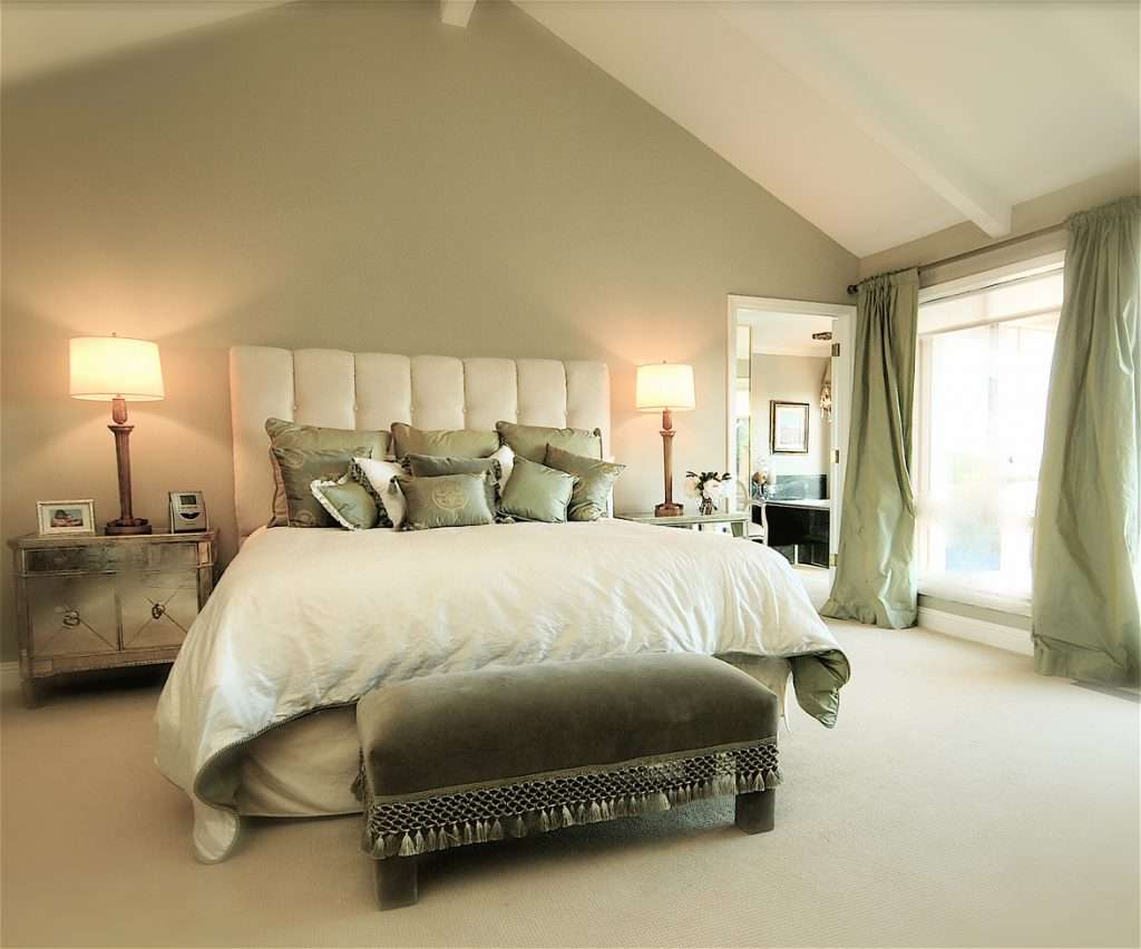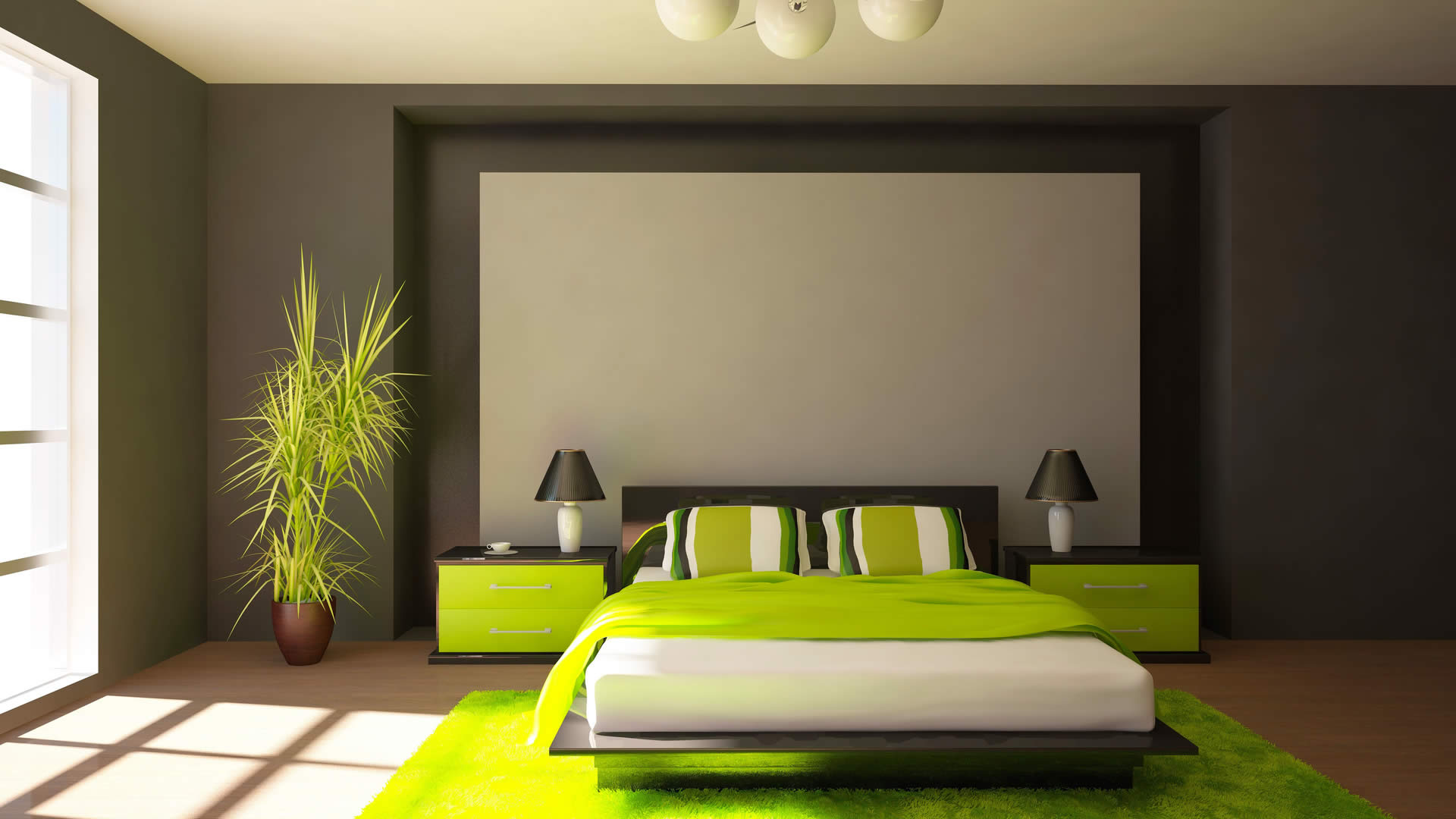 O quarto, feito em suaves tons verdes, contribui para um sono de qualidade. Uma pessoa em tal sala adormece rapidamente e em pouco tempo repõe a força gasta por dia. Os psicólogos concordam que esta cor é a mais bem sucedida para o quarto.
