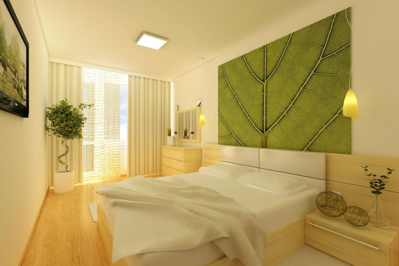 Se você exagerar com tons verdes, a sala não será confortável para dormir. Terá uma aparência sombria e como resultado da combinação errada de cores. Para evitar que isso aconteça no quarto, você precisa ter um tom principal.