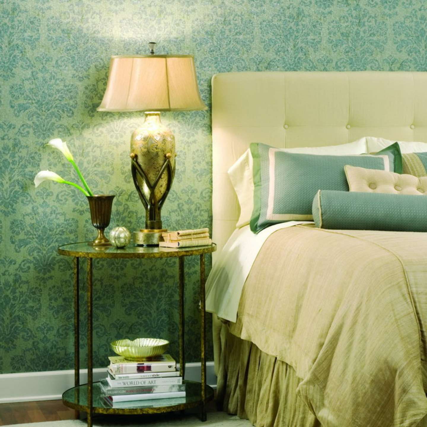 - Para um quarto verde, papel de parede de boa qualidade serve. Em alguns estilos permitiu o uso de tinta acrílica. É desejável que não cubra todas as paredes;