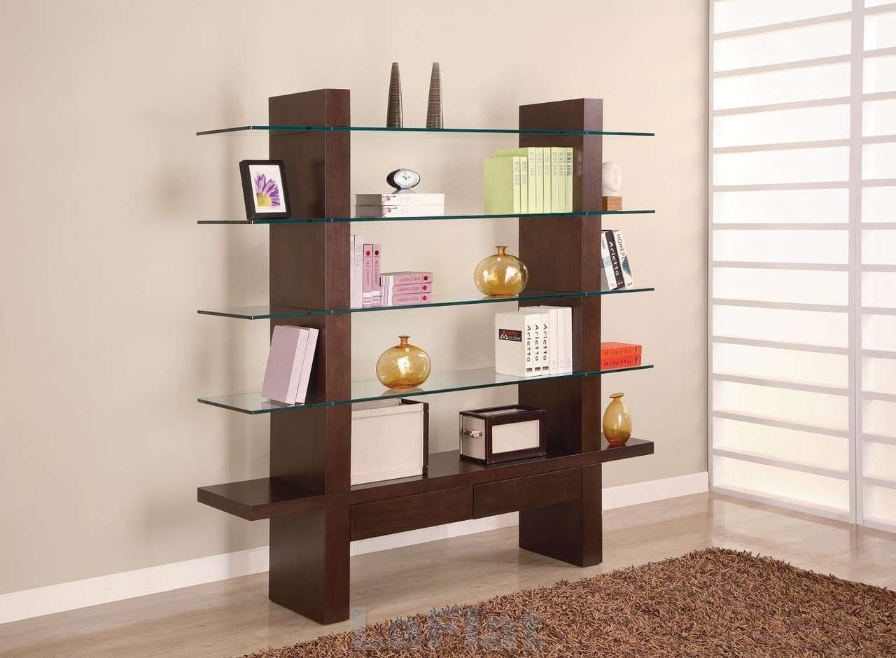 Tais prateleiras, como podem ser inferidas a partir do nome, não estão ligadas diretamente à parede em si, mas à armação que paira sobre ela. Se ele estiver fechado, na verdade, na verdade, um armário com prateleiras de vidro, mas se for aberto, então é uma construção de parede comum.