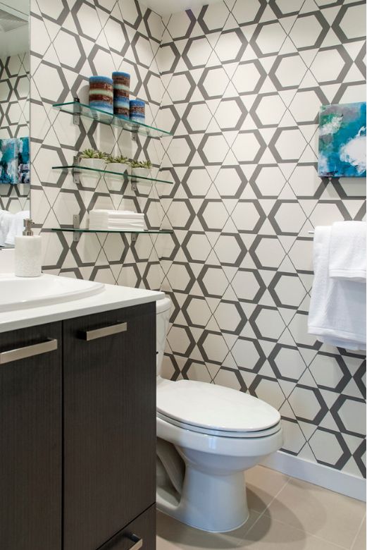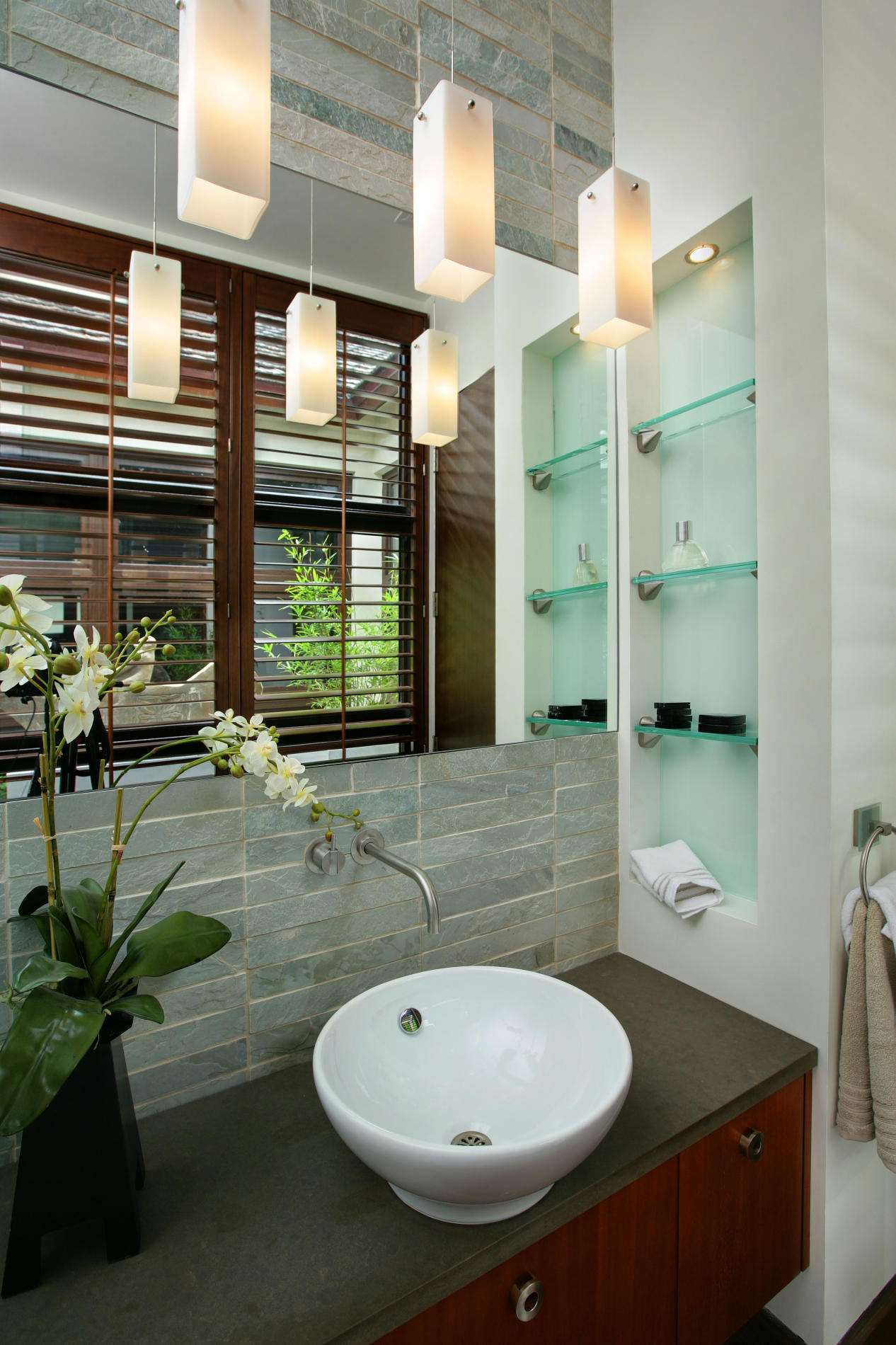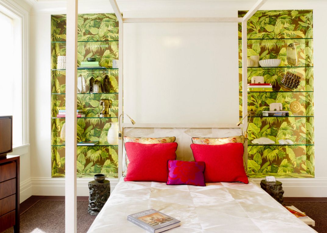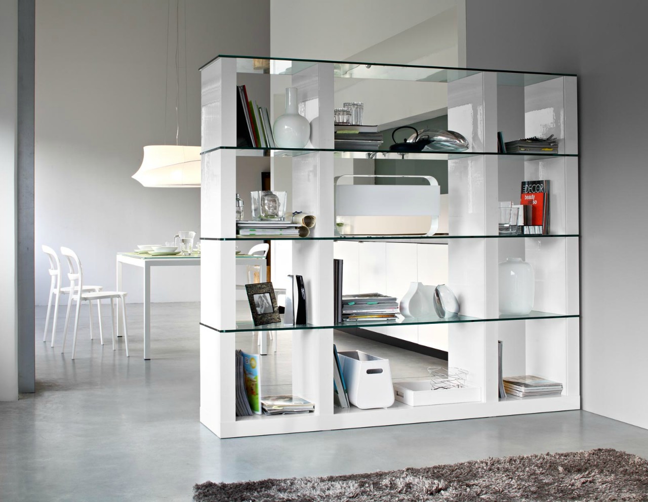 Prateleiras de vidro no interior dos quartos