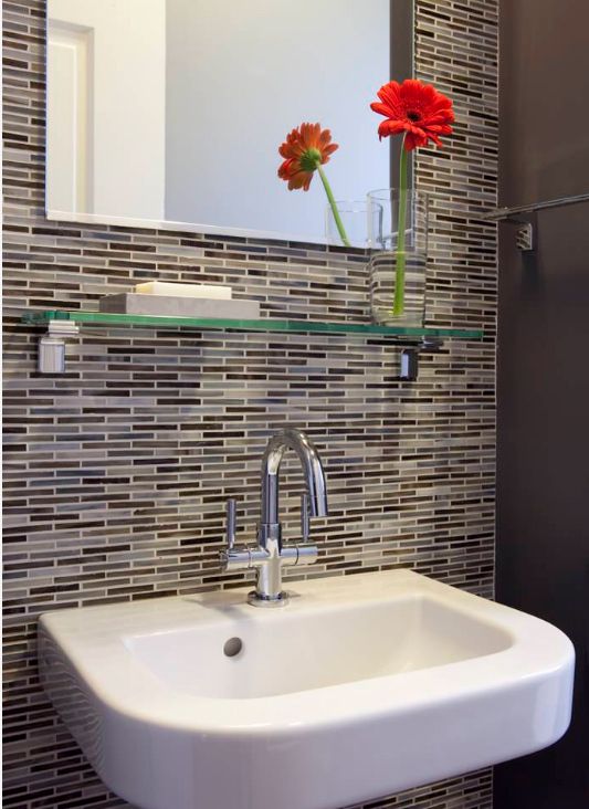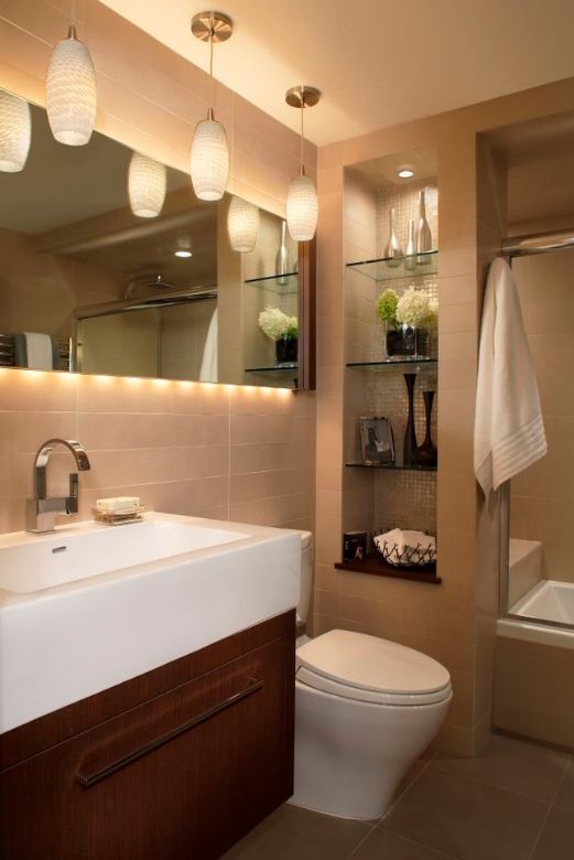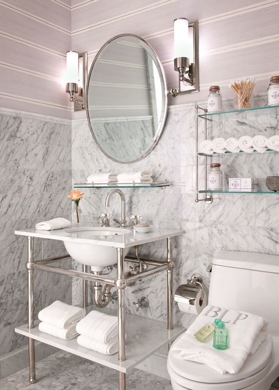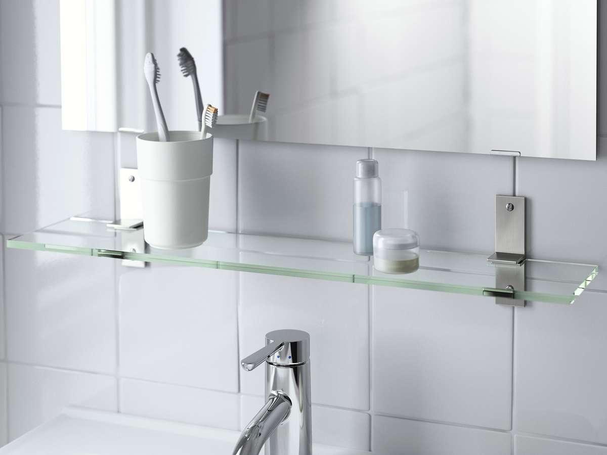 É bom usar vidro caro e prateleiras de canto, que não ocupam muito espaço, como o banheiro em si é geralmente pequeno. Pendure na zona de alcance, não muito baixo, para não bater, não muito alto, de modo que seja confortável de alcançar. Outro espaço de prateleira comum está sob o espelho. Se você faz dela destaque, ajudará a considerar melhor o rosto, as mulheres - com grande comodidade para aplicar maquiagem. Uma vez em algum momento, o regimento terá que ser limpo, porque haverá umidade nele e isso deixará manchas. Faz sentido combinar com outros materiais somente se for metal - todo o resto tem medo de alta umidade.