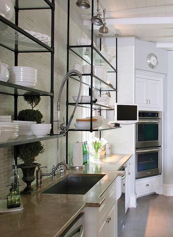 O vidro caro pode ser pendurado mesmo na área do avental de trabalho, perto do fogão - mesmo que você acidentalmente o toque, nada acontecerá. O resto é melhor para pendurar na vizinhança, de modo que durante a cozedura só não faz mal. Organize especiarias (especialmente com bom aspecto nos mesmos frascos de vidro bonitos), cereais, pratos. A limpeza é realizada sempre que possível, já que não leva muito tempo, e é mais fácil limpar gordura ou suco fresco do que esfregá-lo quando secar.