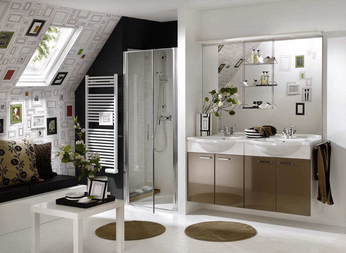 - Plástico. Em contraste com o metal, é bom para o berçário - dilui o rigor do vidro, acrescenta cores brilhantes. É melhor não colocar na cozinha, pois tem medo de flutuações de temperatura, pode derreter. No banheiro - é possível, já que o plástico é completamente insensível à umidade. Na sala de estar ou no quarto, ficará bem apenas em interiores específicos, porque sempre parece barato.