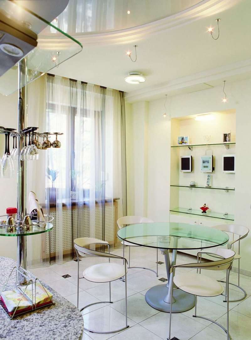 O resultado é um design interno suavemente iluminado, que pode definir a cor, juntamente com a intensidade da luz. Se ao mesmo tempo for fosco, o efeito será especialmente agradável - a luz será difusa, fraca.