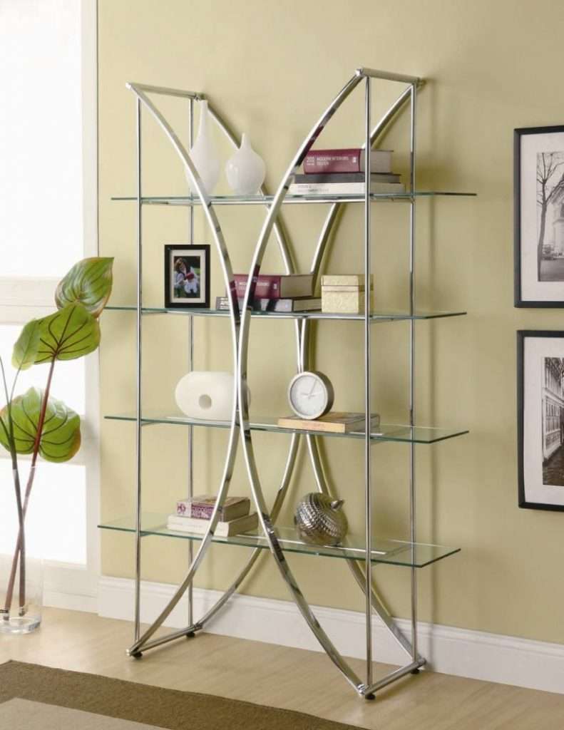 - Metal. Vidro frio combinado com metal frio - ideal para alta tecnologia. Você pode colocar as prateleiras no banheiro, na cozinha, em qualquer lugar, porque o metal também não tem medo de umidade, nem de mudanças de temperatura, nem de fungos. É para uma criança que tal combinação seria muito rigorosa.