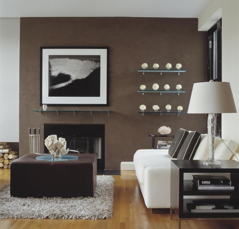 Em qualquer sala em que as prateleiras estejam localizadas, você deve sempre ficar de olho se elas são uma abordagem de composição para todo o resto. Colorido - seja combinado com as cores principais do interior. Transparente - não saia do conceito geral. Fosco, espelho, com gravação, vitral - qualquer prateleira deve complementar a ideia de design e não destruí-la.