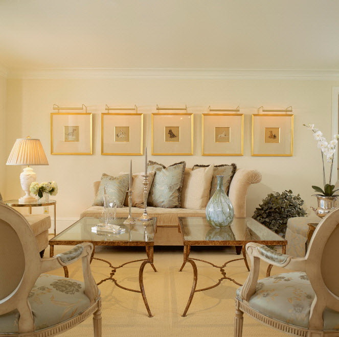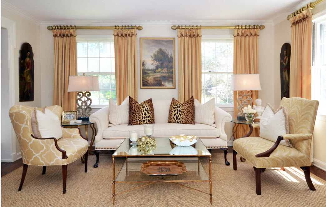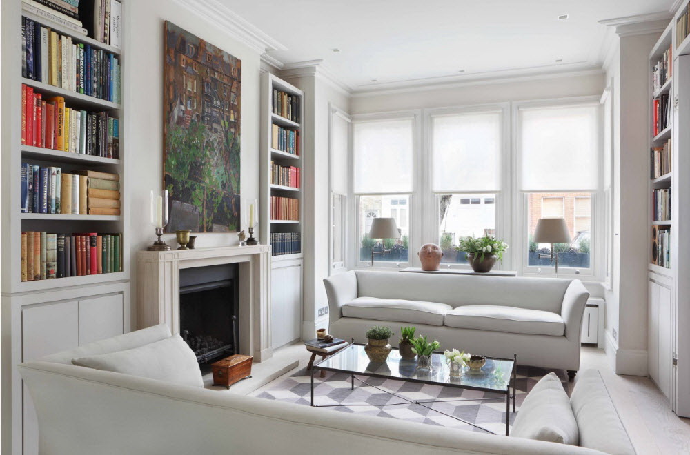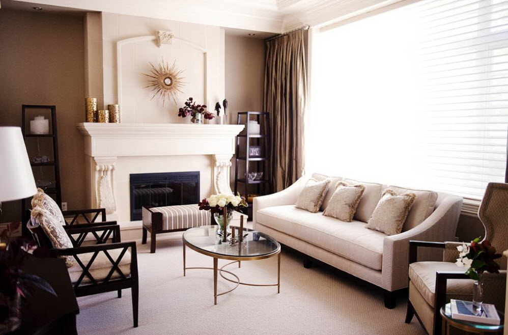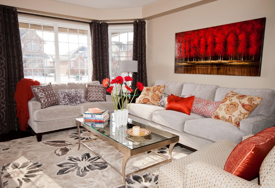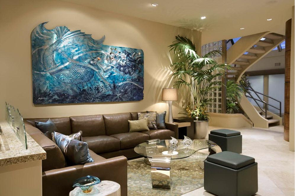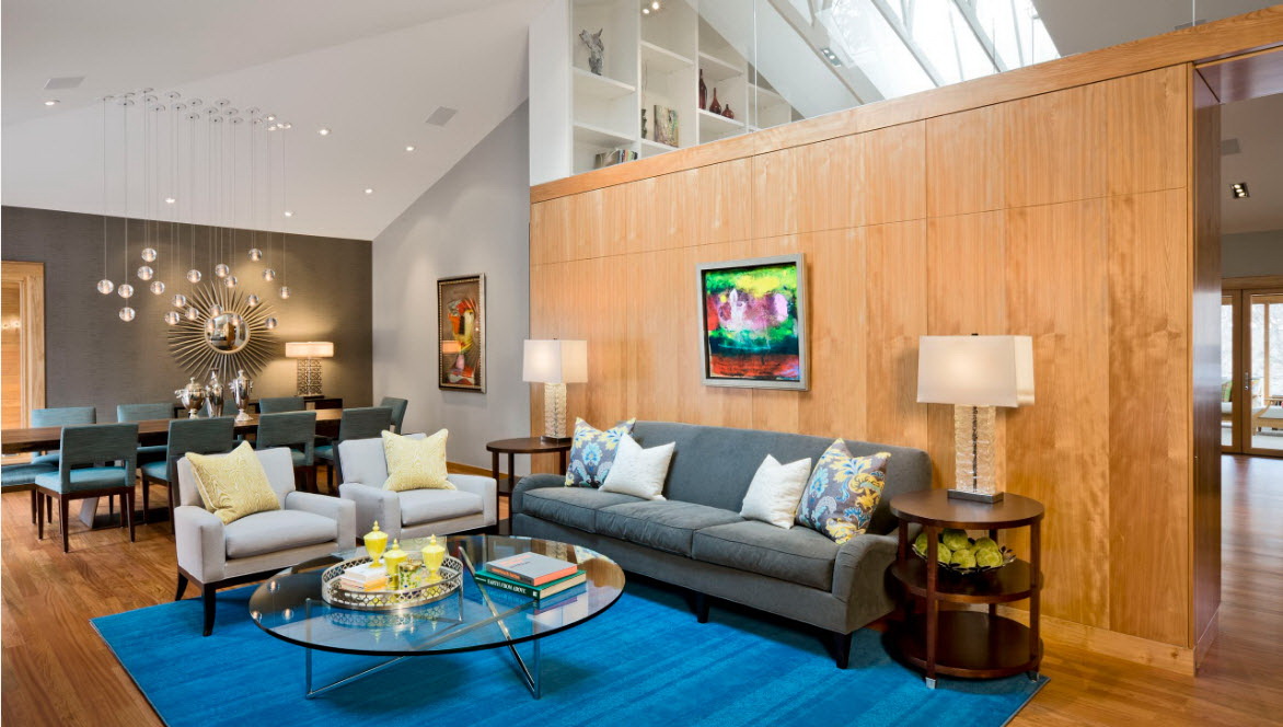 Esse mobiliário é bem complementado pelos slides que estão na moda nesta temporada, prateleiras decorativas, harmonizam bem com móveis macios. Sofás, as cadeiras escolhem com qualquer estofamento: de couro, tapeçaria e outros materiais. Vidro transparente ou fosco não entra em "conflito" com diferentes materiais.