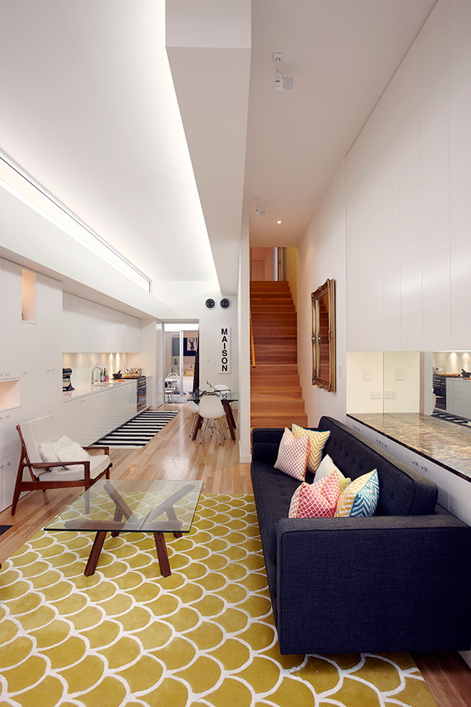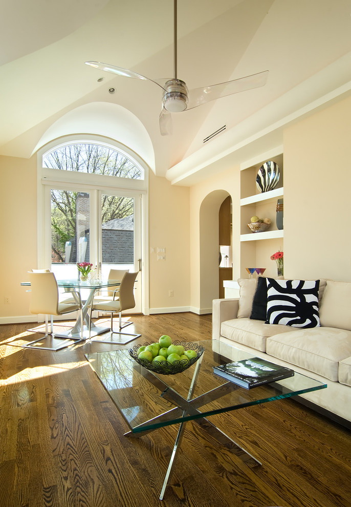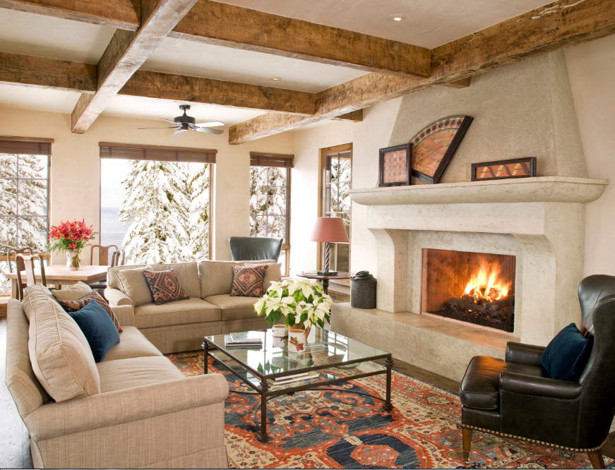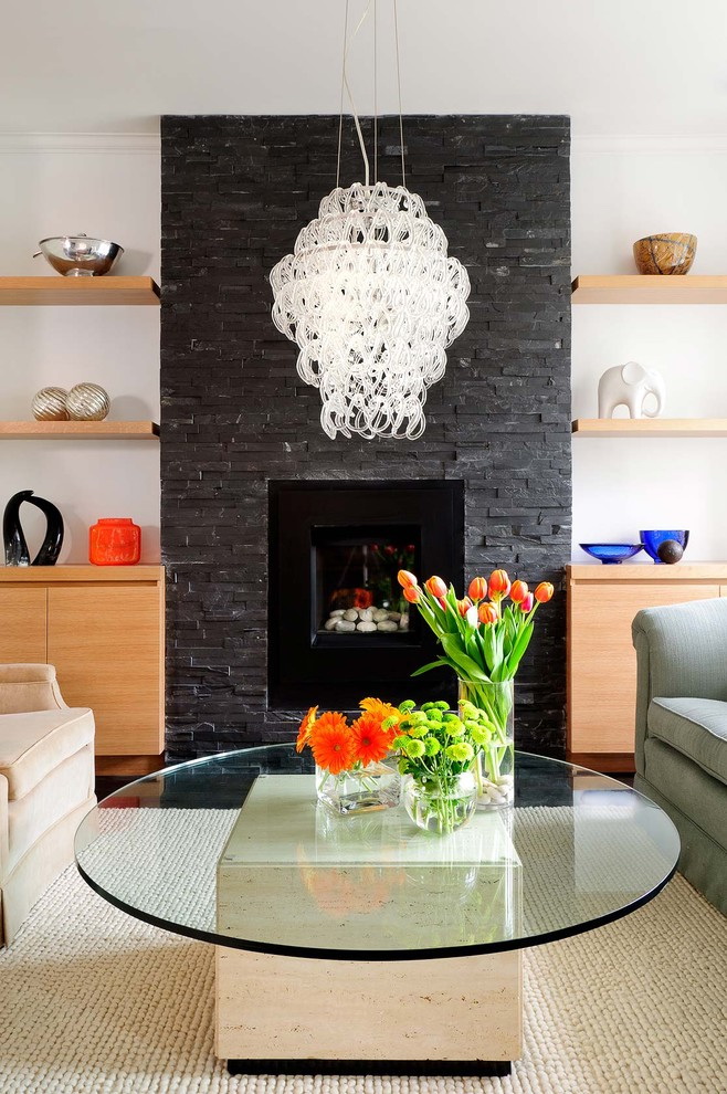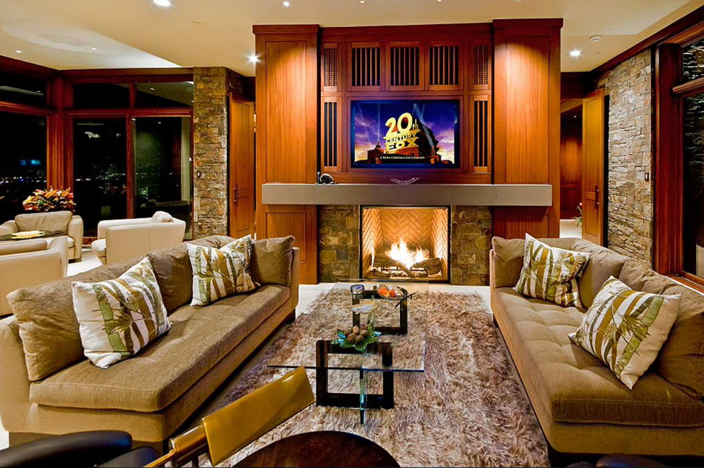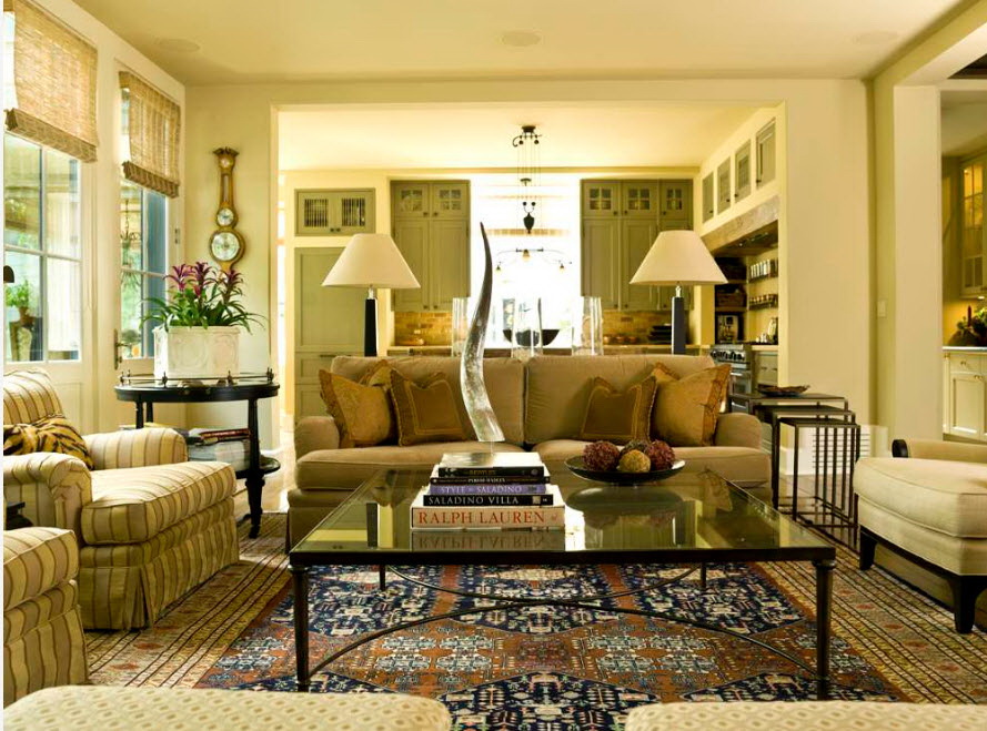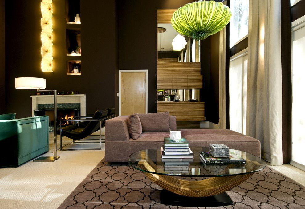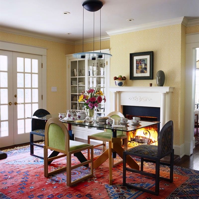 Esse mobiliário é bem complementado pelos slides que estão na moda nesta temporada, prateleiras decorativas, harmonizam bem com móveis macios. Sofás, as cadeiras escolhem com qualquer estofamento: de couro, tapeçaria e outros materiais. Vidro transparente ou fosco não entra em "conflito" com diferentes materiais.