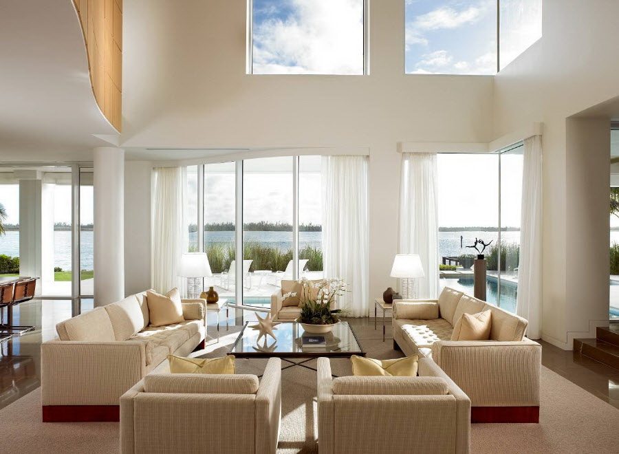 Lembre-se de seus sentimentos na floresta, nas estepes, no mar ou no oceano. É da natureza humana sentir-se confortável em grandes espaços vazios. Quanto menor e menos perceptível o mobiliário, mais discreto ele se torna: ele não é impressionante, não ocupa o espaço visualmente, não domina e não causa irritação.