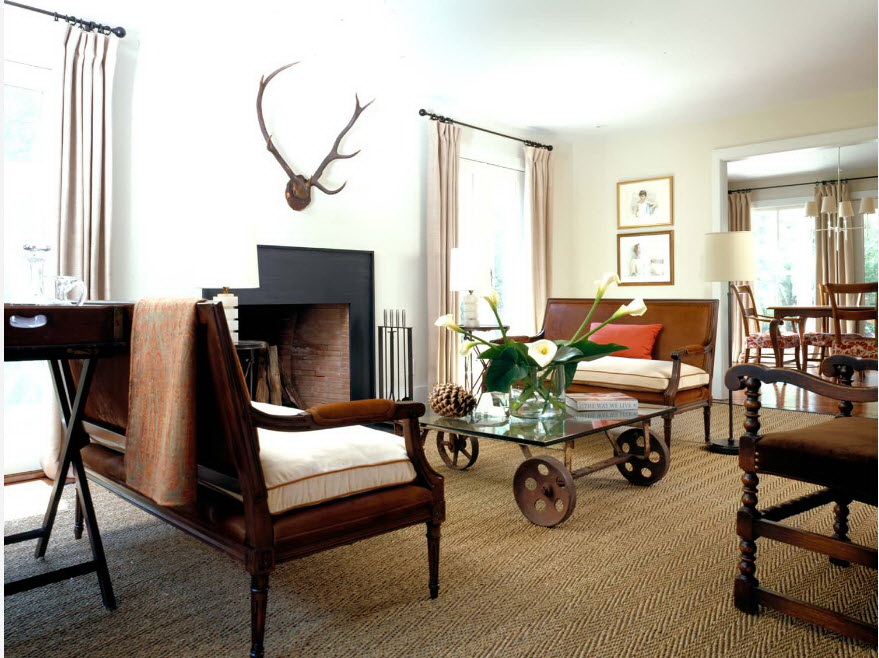 - Música country requer enquadramento de madeira. Móveis de vime serão apropriados.