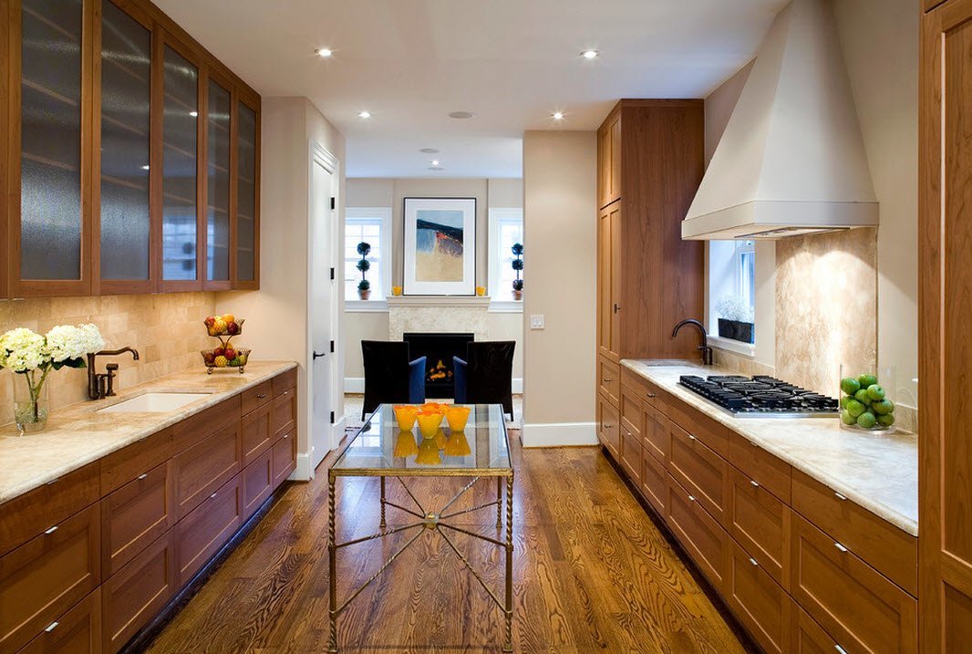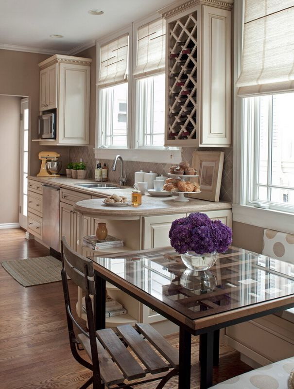 Você não está pronto para "dar a vida" para manter a perfeita limpeza de bancadas transparentes? Escolha vidro fosco e impressão de fotos. Sujeira e poeira serão menos perceptíveis. Apartamento adquire um visual exclusivo que combina leveza e mobília não roube espaço.