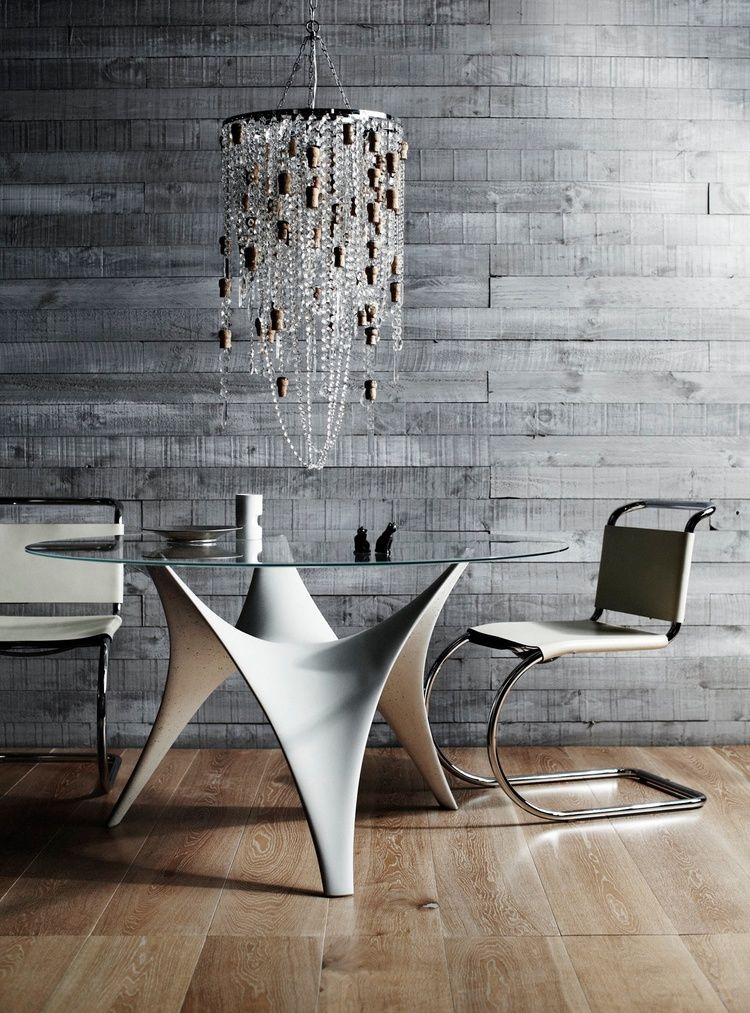 - Material universal. O vidro pode ser usado para decorar vários estilos de interiores. Designers criam modelos incomuns.