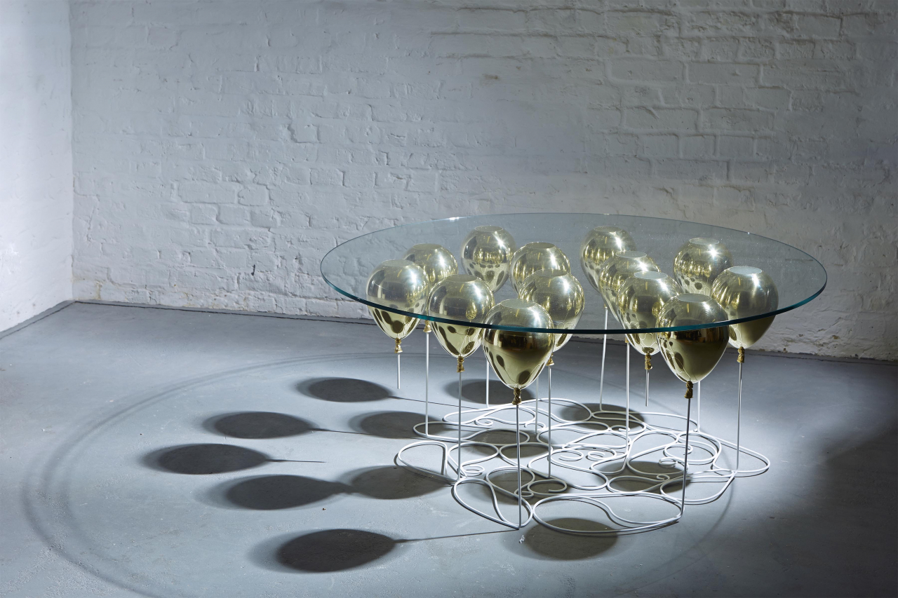 Placas, tigelas de salada figurativamente pairam no ar e criam uma atmosfera de grandeza fabulosa.