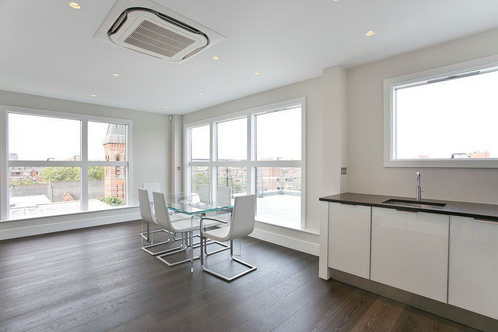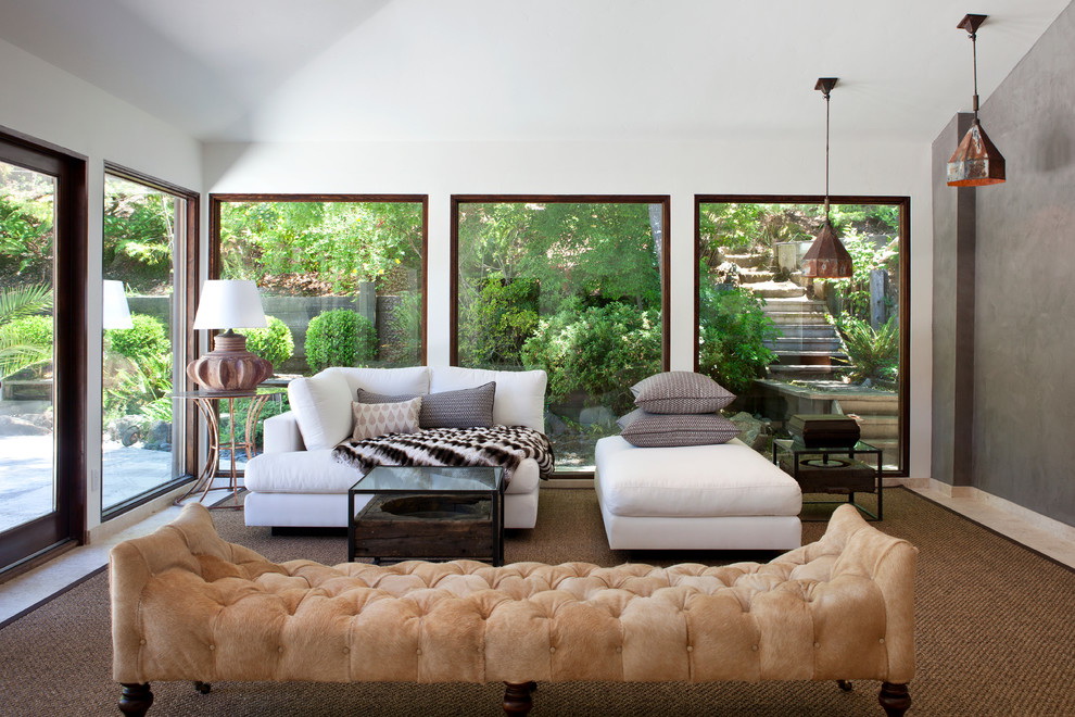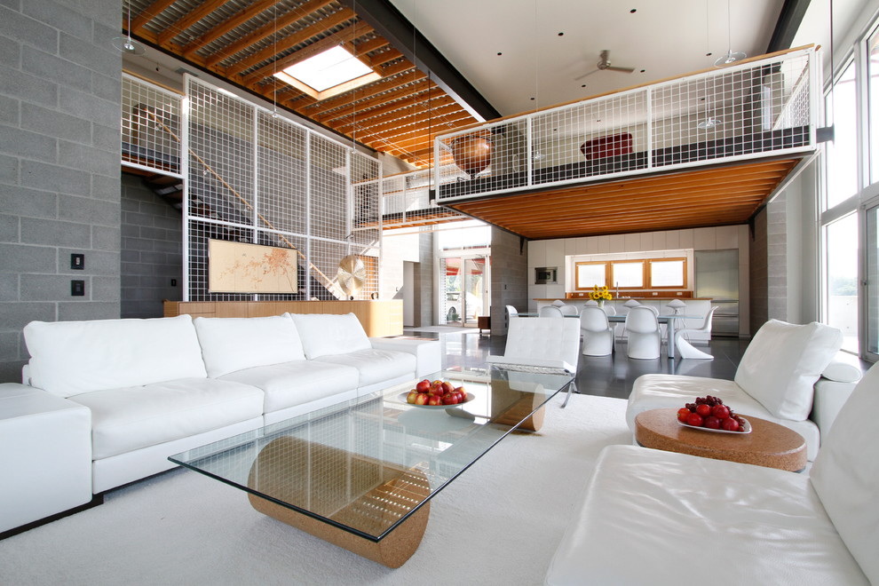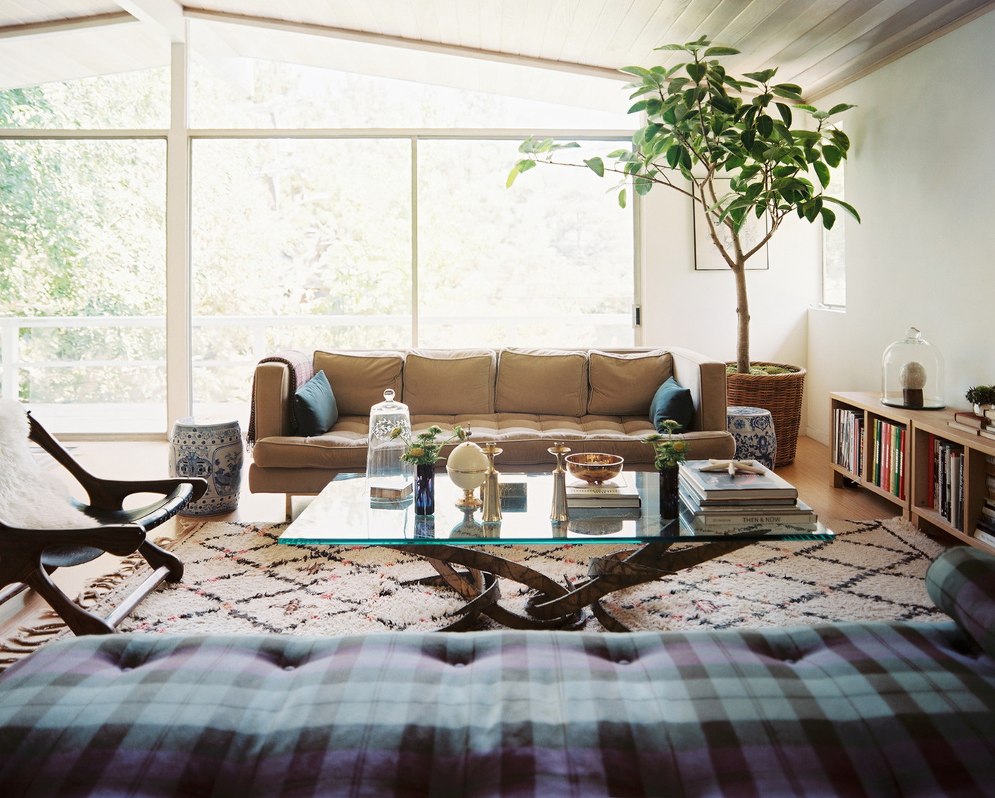 - A superfície de vidro transmite luz e aumenta a área da sala, o que a torna maior.