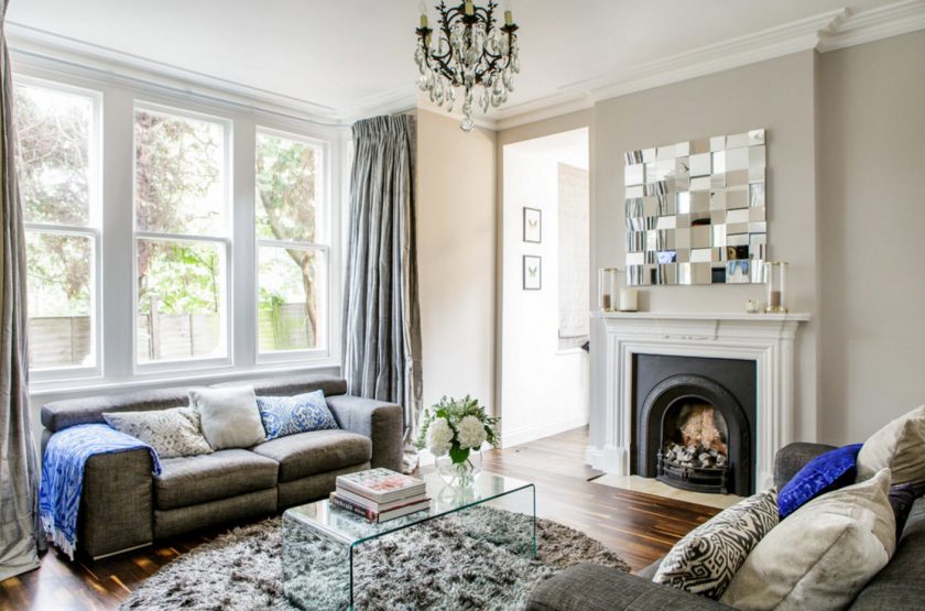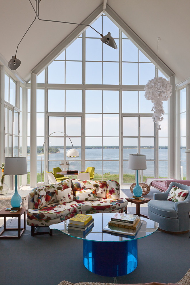 Uma oportunidade interessante para dar vidro colorido. Dependendo da decoração da sala, escolha uma sombra: