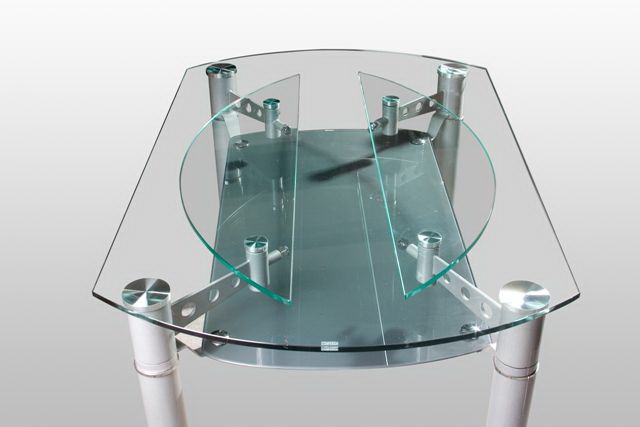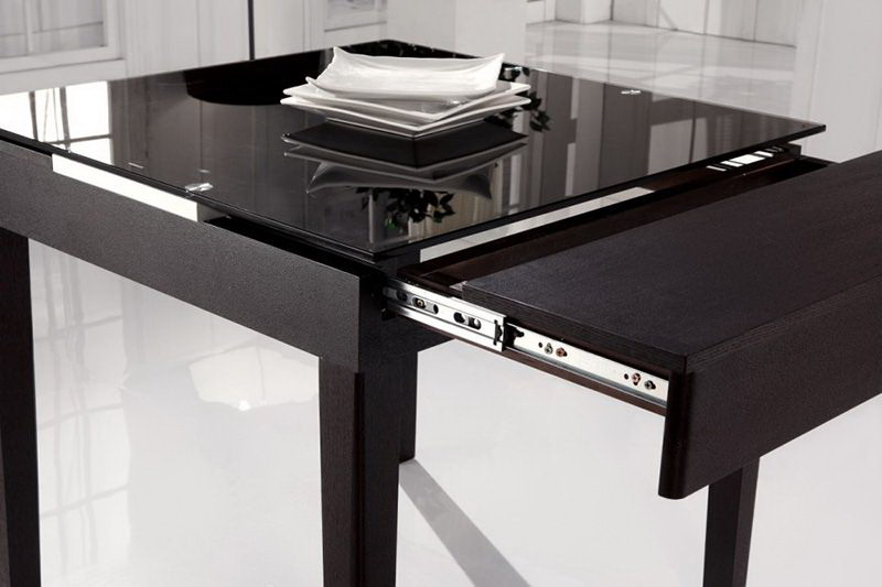 Tabelas transformadores têm mecanismos convenientes que ajudam "em um piscar de olhos" pequenos móveis para fazer grandes e vice-versa. No passado, estas eram estantes de cartão. Essa mobília há muito tempo entrou no esquecimento. Versões modernas de mesas com superfície transparente são funcionais e atraentes.