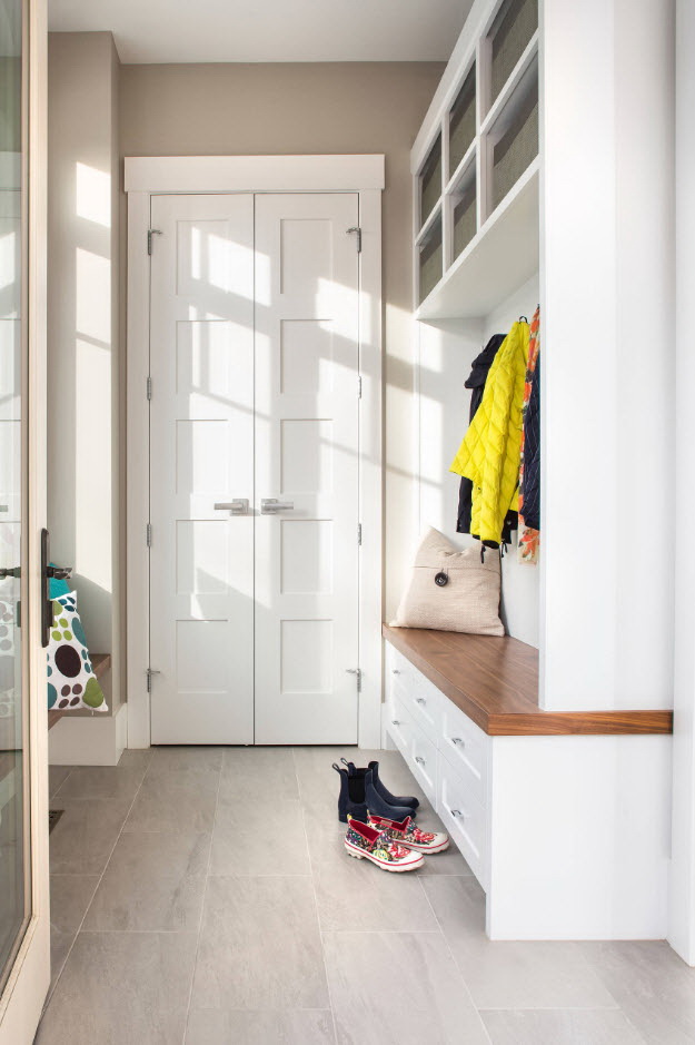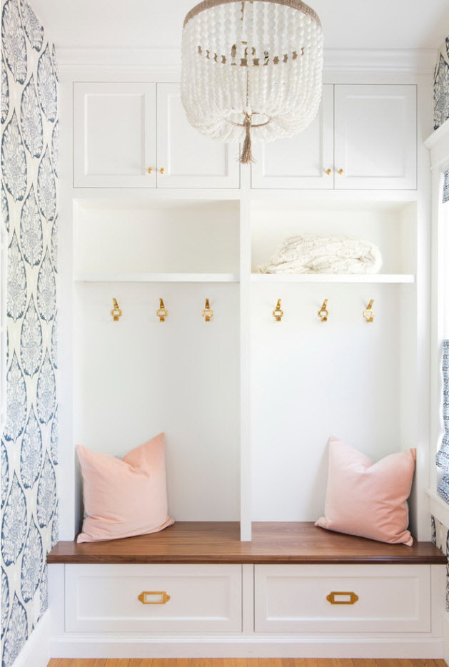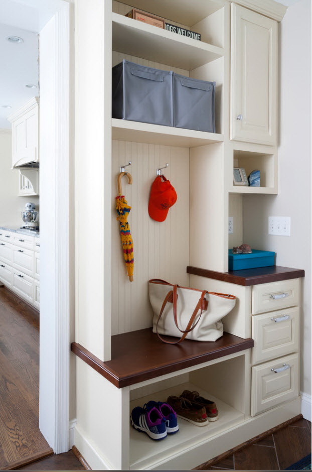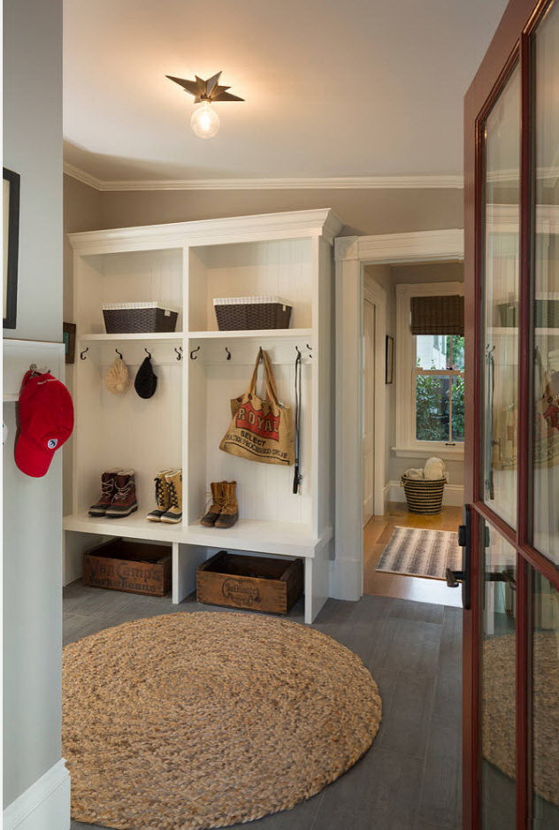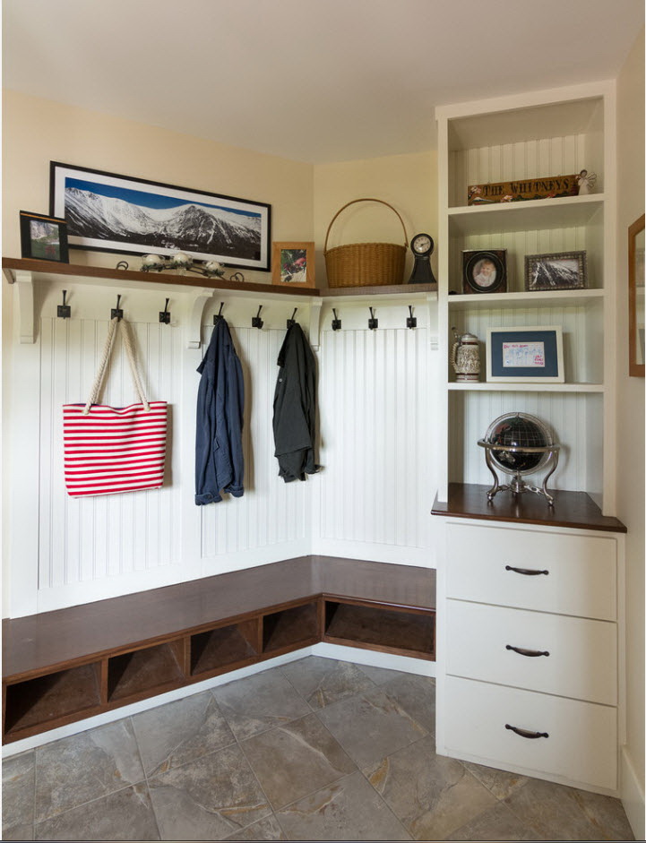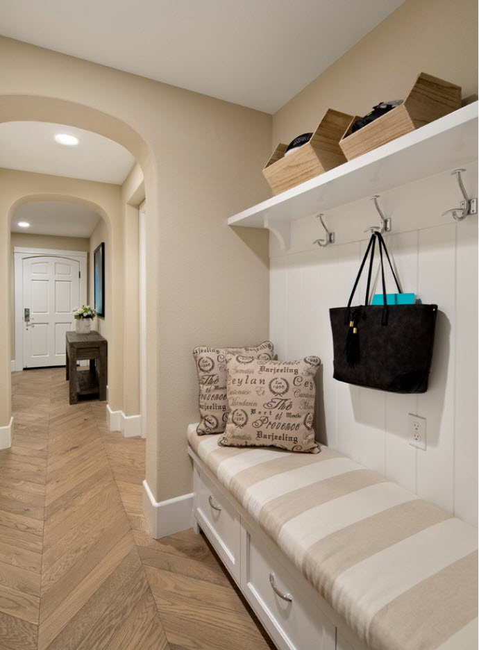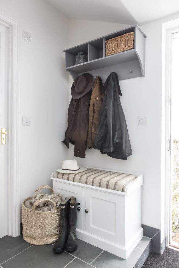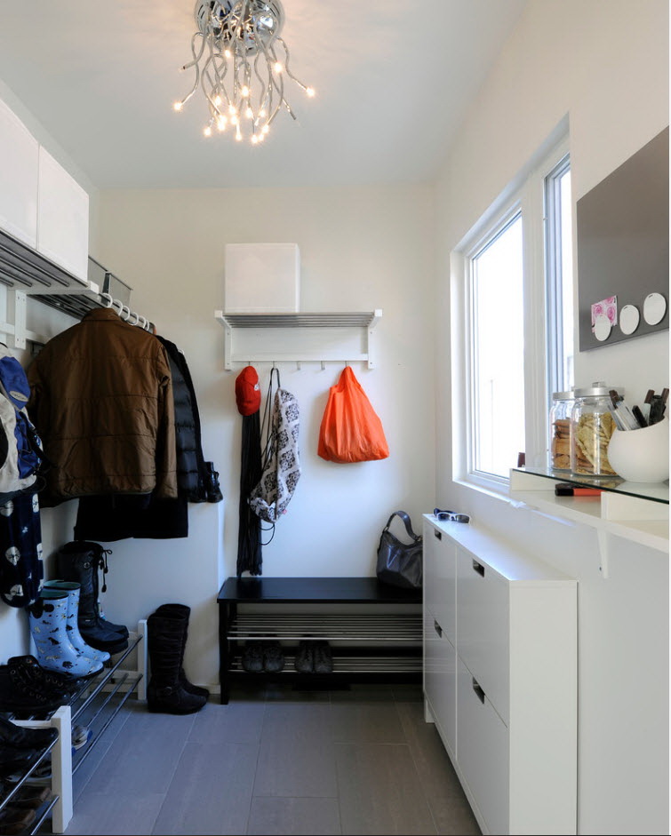 Salões em apartamentos urbanos têm uma filmagem modesta, não equipada com janelas, entram em um corredor comum. A decoração do quarto inclui armário ou um cabide para roupas sazonais, um espelho, uma cômoda ou uma prateleira para guardar as chaves. Os proprietários de apartamentos espaçosos ou casas de campo complementam o mobiliário do corredor com banquetas, cadeiras ou sofás.