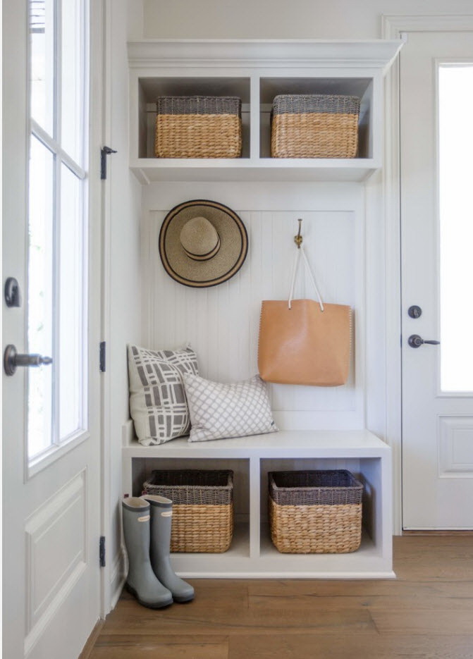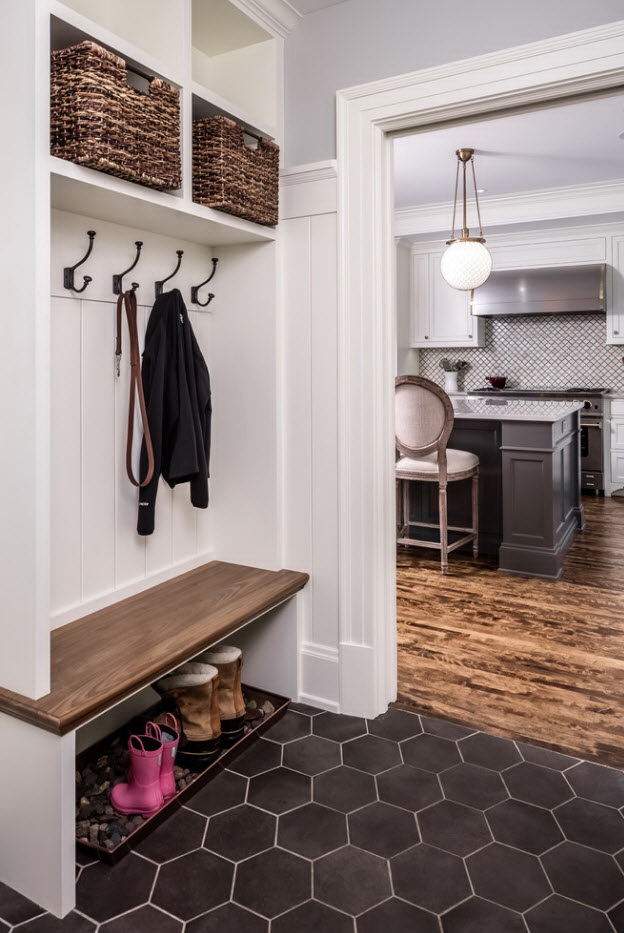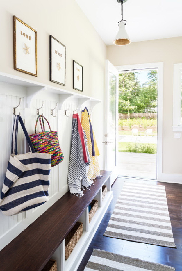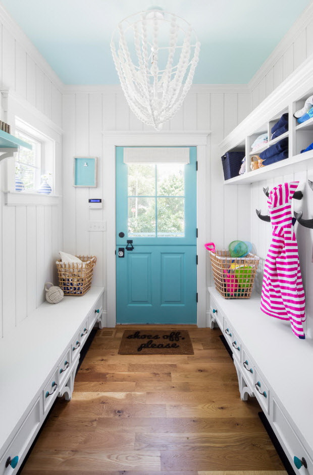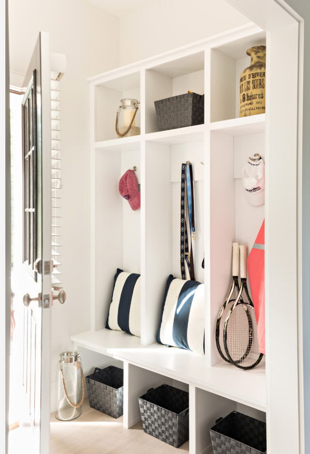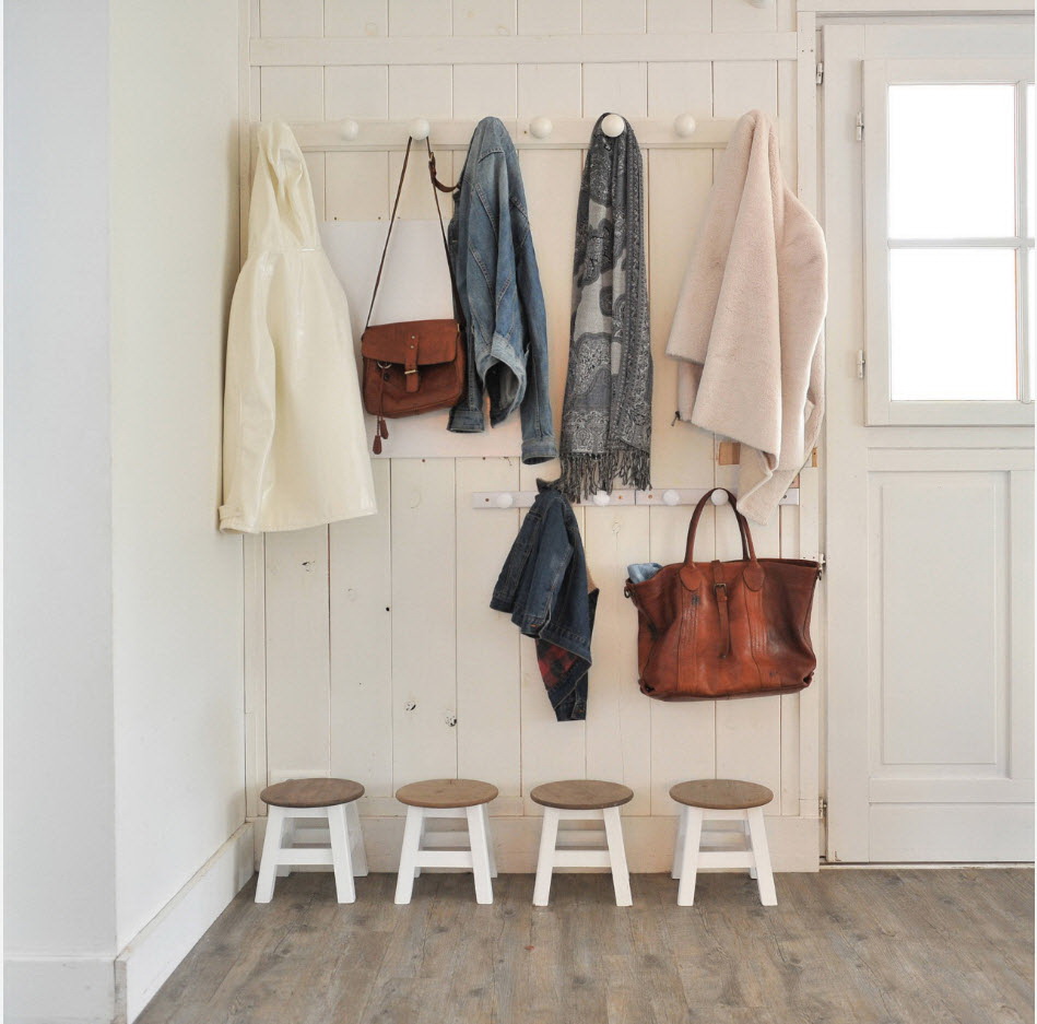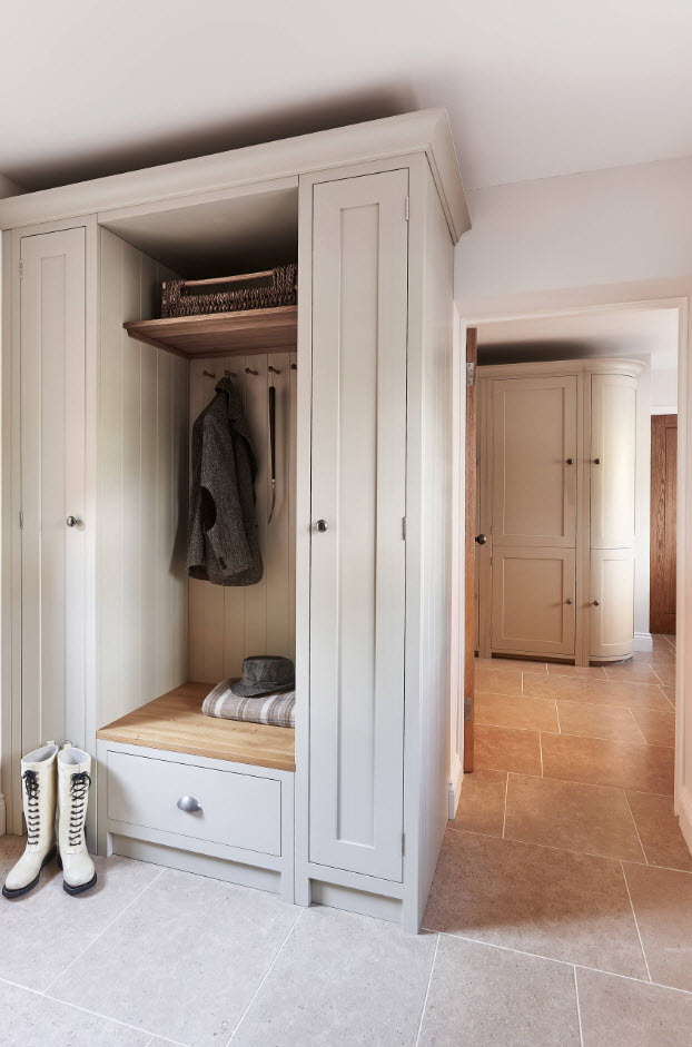 Salões em apartamentos urbanos têm uma filmagem modesta, não equipada com janelas, entram em um corredor comum. A decoração do quarto inclui armário ou um cabide para roupas sazonais, um espelho, uma cômoda ou uma prateleira para guardar as chaves. Os proprietários de apartamentos espaçosos ou casas de campo complementam o mobiliário do corredor com banquetas, cadeiras ou sofás.