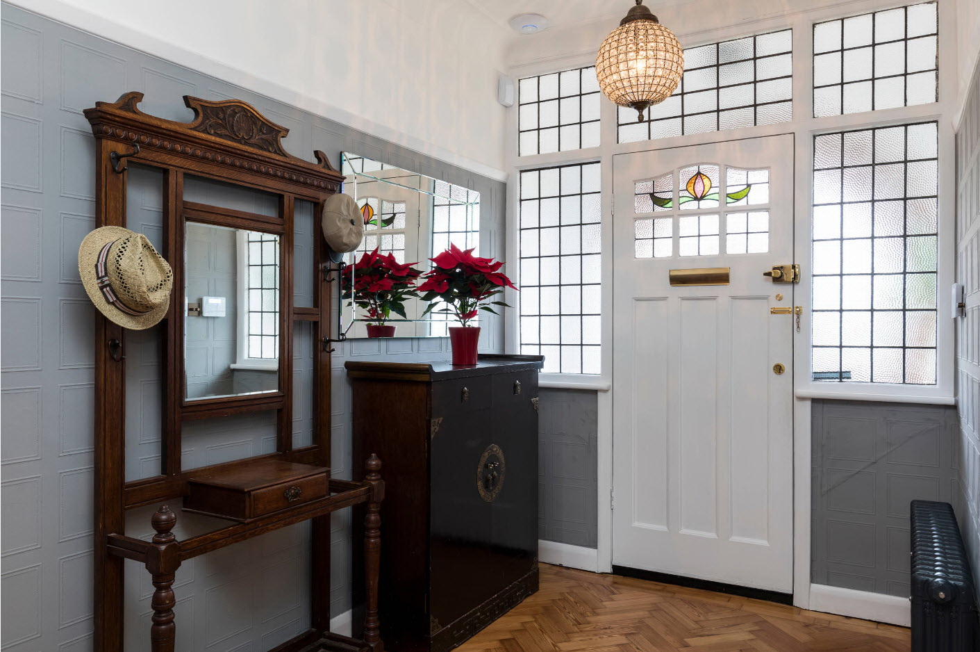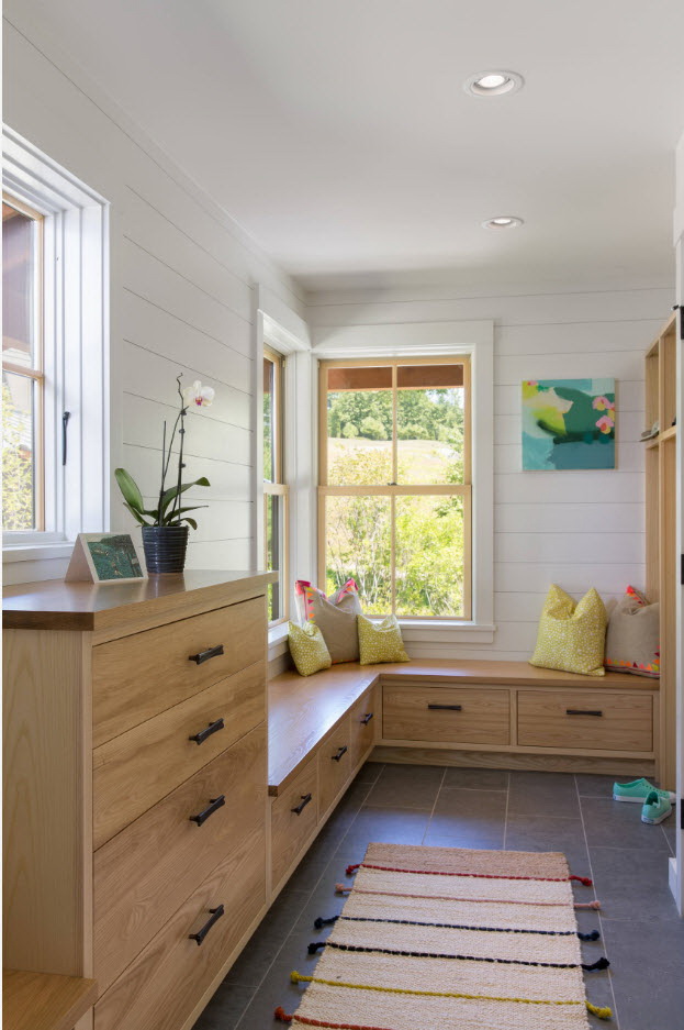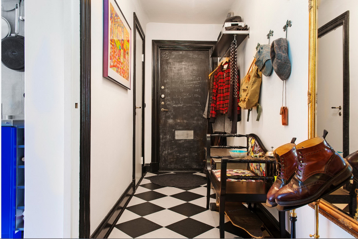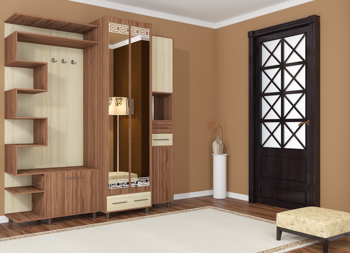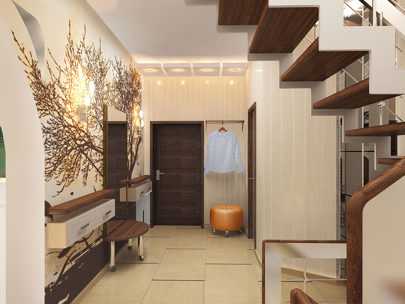 Salões em apartamentos urbanos têm uma filmagem modesta, não equipada com janelas, entram em um corredor comum. A decoração do quarto inclui armário ou um cabide para roupas sazonais, um espelho, uma cômoda ou uma prateleira para guardar as chaves. Os proprietários de apartamentos espaçosos ou casas de campo complementam o mobiliário do corredor com banquetas, cadeiras ou sofás.