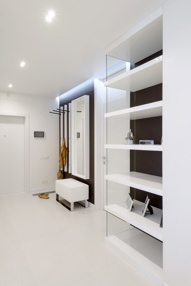 - Um hall de entrada em um apartamento sem painéis de porta instalados (por exemplo, em um estúdio) deve ser concluído no mesmo tom que o resto das instalações.