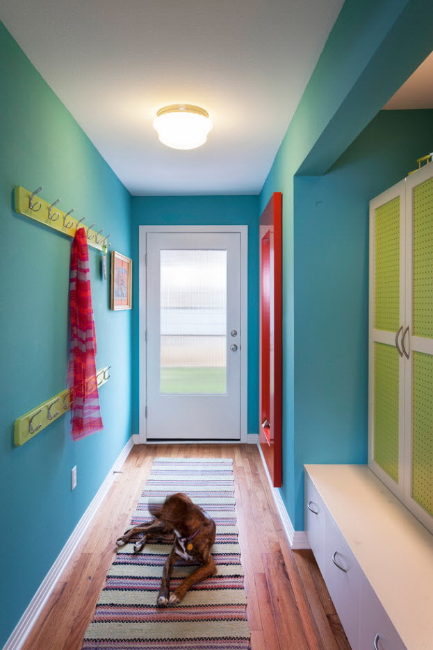 Uma opção rápida para terminar as paredes - a sua pintura mate ou tinta brilhante. Dependendo da densidade e da composição química, existem tintas à base de óleo, acrílico ou à base de água. Para registro do corredor combinar várias cores e texturas.