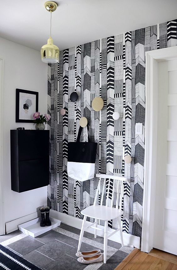 Uma maneira simples de atualizar o acabamento está disponível para corredores de vários tamanhos, o papel de parede tem muitas texturas e cores, elas são fáceis de substituir se danificadas. No entanto, papéis de parede de alta qualidade têm um preço alto, o processo de acabamento leva tempo e habilidade, o material é sensível à umidade.