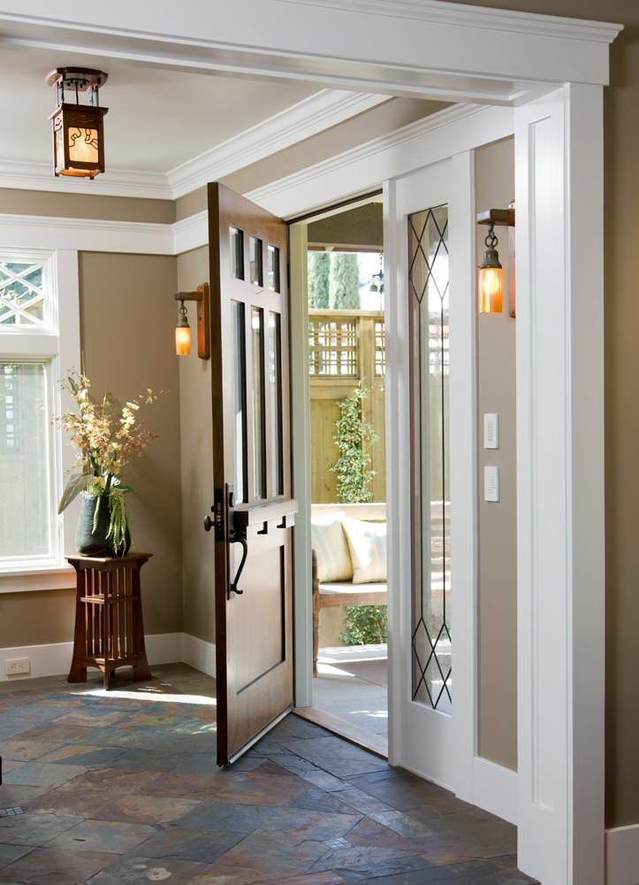 - A maioria das portas é projetada “sob a árvore”, então as paredes em um tom marrom, bege ou arenoso comporão um conjunto harmonioso com telas.
